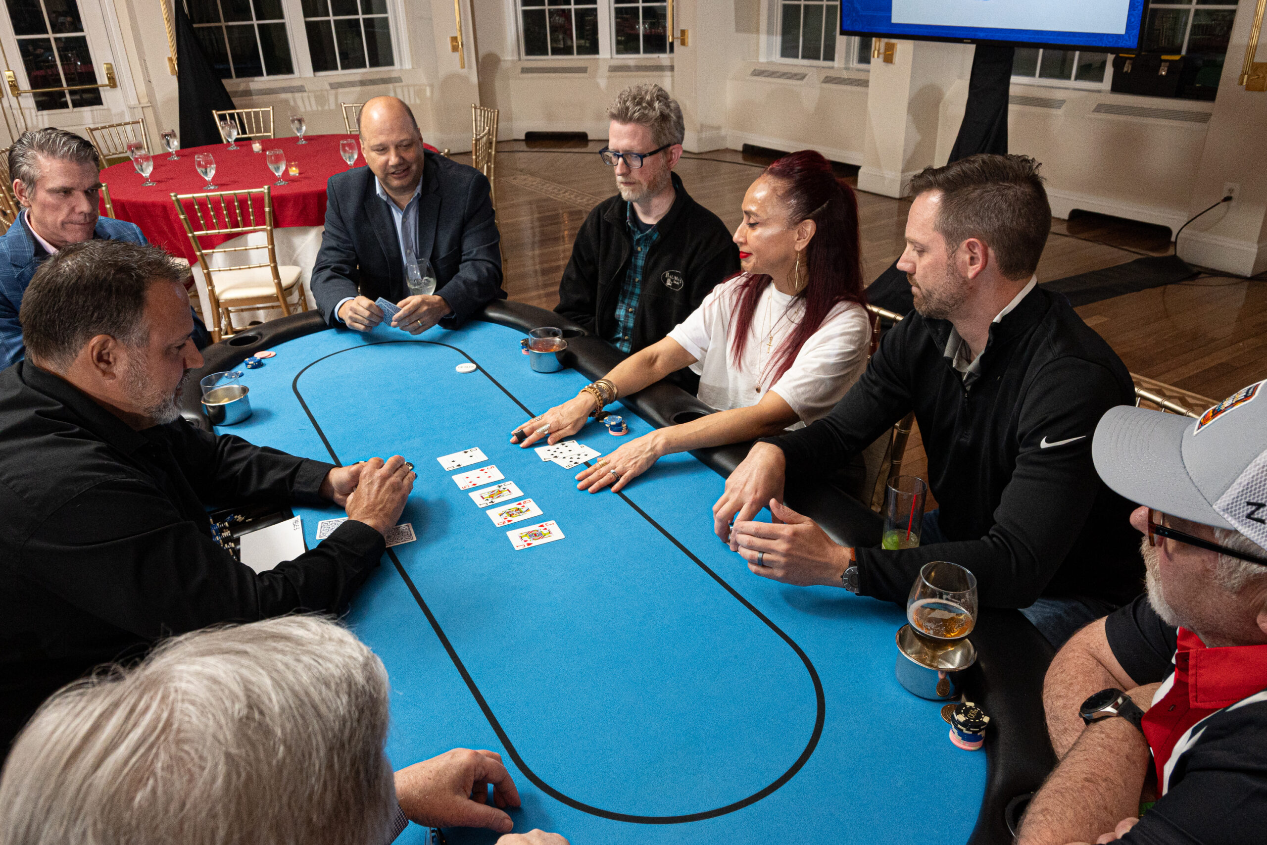 More than 170 registered guests played in the evening’s tournament, which included raffles, a silent auction, a full buffet dinner, an open bar, and desirable prizes for the top winners of the tournament. Congratulations to: Charlie Mazzocchi, first place winner in the 2024 POKER FOR A PURPOSE tournament who received one entry to a future Borgata Open and hotel stay in Atlantic City, NJ; second place winner Gustavo Marin received a packaged overnight stay at Hard Rock Hotel and Casino in Atlantic City including a fine-dine gift certificate and two tickets to a show; and third place winner Scott Tirone who received a Movado watch, compliments of SVS Fine Jewelry.