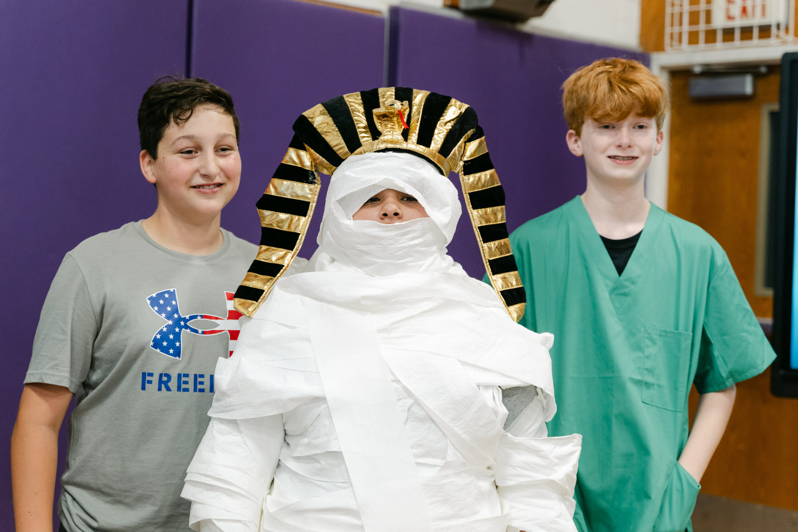 The event was held in the gym, which featured projects such as pyramids and dioramas, handmade jewelry, ceramics and presentations. Students answered questions on their individual projects and celebrated their year’s work. Students even dressed up as mummies and pharoahs to greet family members. This year’s Ancient Civilizations showcase left visitors impressed and informed about the students’ coursework.