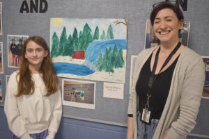 Fifth-grade Sabrina Mooney is one of several student artists to be featured in a hallway display for Youth Art Month, with her piece chosen by art teacher Christine Donnelly.