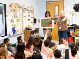 Bethpage School District third graders at Kramer Elementary School participated in a program about butterflies on Wednesday, May 15, hosted by Nassau BOCES Naturalists Bette Bass and Fanny Kleisler. The children learned about the difference between a moth and a butterfly, pollinators, the parts of a butterfly, why butterflies are so important and what they need for survival. Two student volunteers dressed up as a butterfly and moth and the class was able to experience how these insects see with special glasses. Third graders also learned a song to help them remember the parts of a butterfly and took part in a game about what helps or hinders a butterfly’s survival. “This is something we do every year, it’s an amazing program,” said third-grade teacher Mrs. Cavallo. “They already have schema on butterflies but this program takes them to the next level and they get to learn more about the full metamorphosis.”