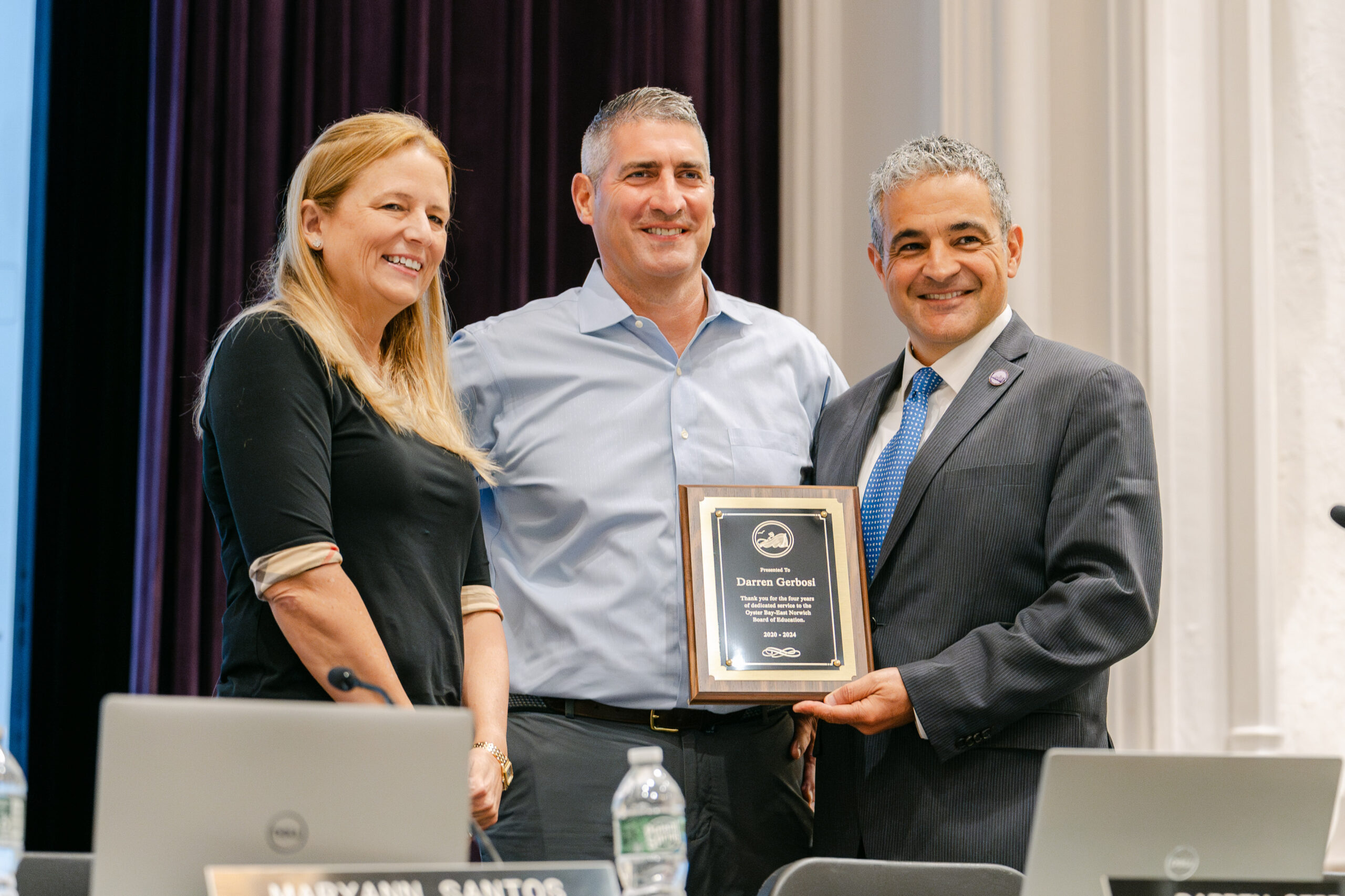Board of Education Trustee Darren Gerbosi was honored by the school district’s superintendent, Dr. Francesco Ianni, for his work on the board. Gerbosi has been a committed member for the past eight years. At the event, Dr. Ianni presented Gerbosi with a plaque for his service to the district.