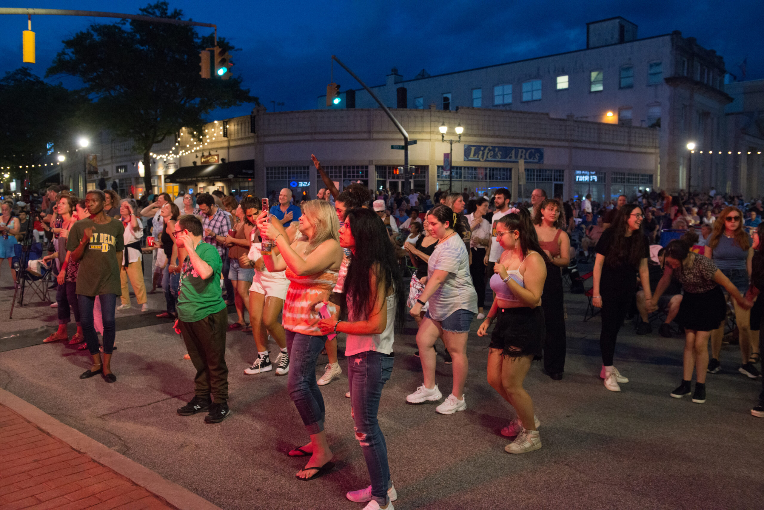 Audience members dancing in the streets