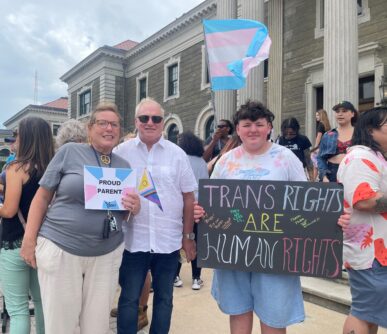 Alongside civil liberty advocates, parents of transgender youth, and LGBTQ+ community members and their allies protested the Blakeman administration and Republican Legislative Majority’s approval of a measure that prohibits the leasing of County parks facilities to any team that permits transgender female athletes to participate on women’s sports teams – an action that has been denounced by New York State Attorney General Letitia James as “blatantly illegal.” The New York State Human Rights Law prohibits discrimination in employment, housing, credit, places of public accommodation, internships, domestic services, volunteer firefighting, and private, non-sectarian educational institutions based upon actual or perceived sexual orientation and gender identity or expression.