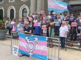Juli Grey-Owens, Executive Director of Gender Equality New York, organized the rally and called out the legislature’s Republican majority for imposing the ban with no evidence of injuries by transgender women in female sports games in Nassau County, Long Island or New York State. Nassau County Executive Bruce Blakeman, a Republican, cited injuries to three girls by a biological male in a basketball game in New England and injuries to girls on a Maryland volleyball team by a biological male.