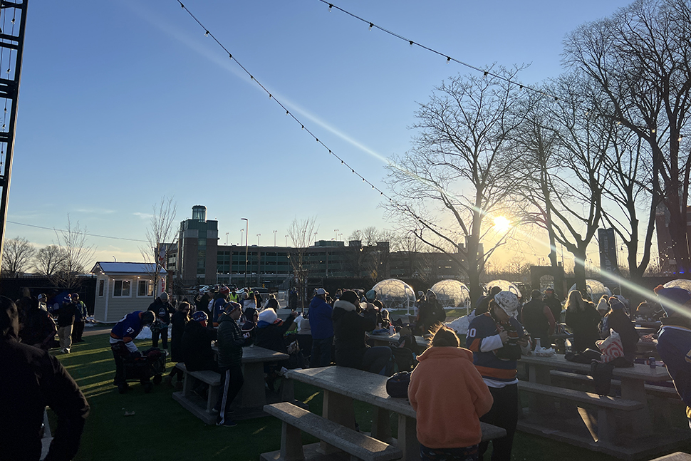 The Park at UBS Arena hosted a Stadium Series Watch Party for the New York Rangers vs New York Islanders game in Metlife Stadium. Islanders fans stuck it through frigid temperatures for an exciting game that ended with a controversial finish that let the fans down. The Islanders held a 5-3 lead late in the third period until Chris Kreider and Mika Zibanejad tied the game at five apiece with two powerplay goals. Artemi Panarin scored 10 seconds into overtime giving the Rangers the win. The goal was reviewed after Islanders defenseman Noah Dobson hit the net. It was ruled a goal because the puck slid in after Dobson and Islanders goalie Ilya Sorokin knocked it around.