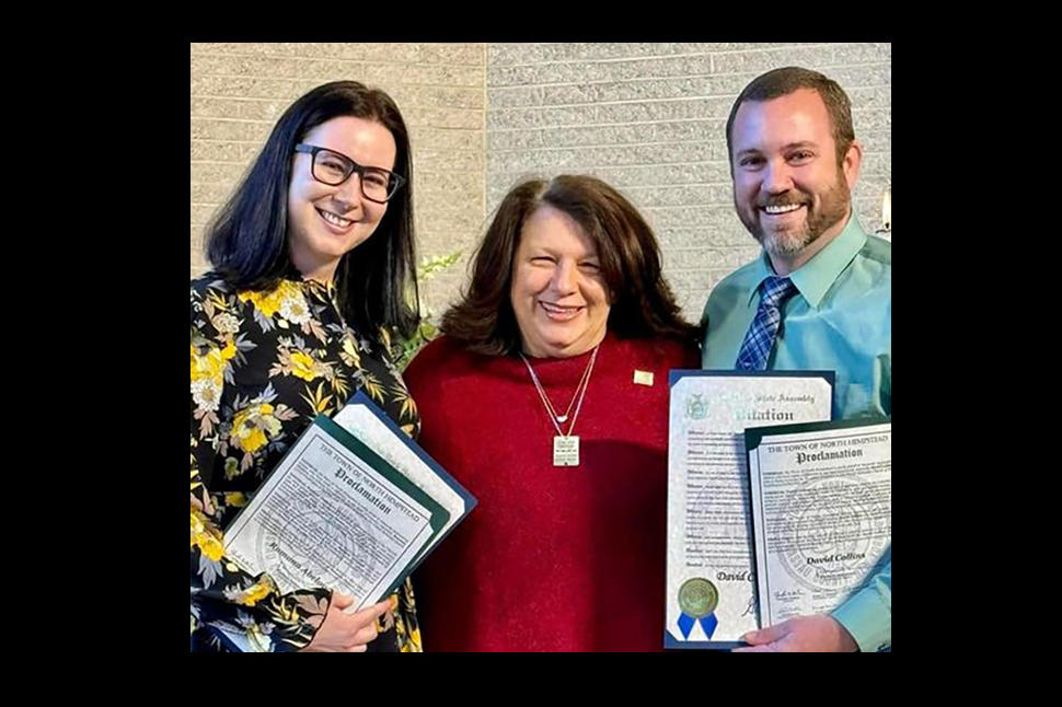 Town of North Hempstead Councilmember Mariann Dalimonte recently attended the final mass for two renowned pastors from the United Methodist Church of Port Washington, Pastor David Collins and Pastor Romina Abelova, on Sunday, Feb. 18. Pastors Collins and Abelova were integral leaders of the congregation for over six years, and the farewell mass was an emotional celebration of their time with the church. In honor of their tireless and selfless work, Council Member Dalimonte presented Pastors Collins and Abelova with Proclamations of Recognition from the Town of North Hempstead.