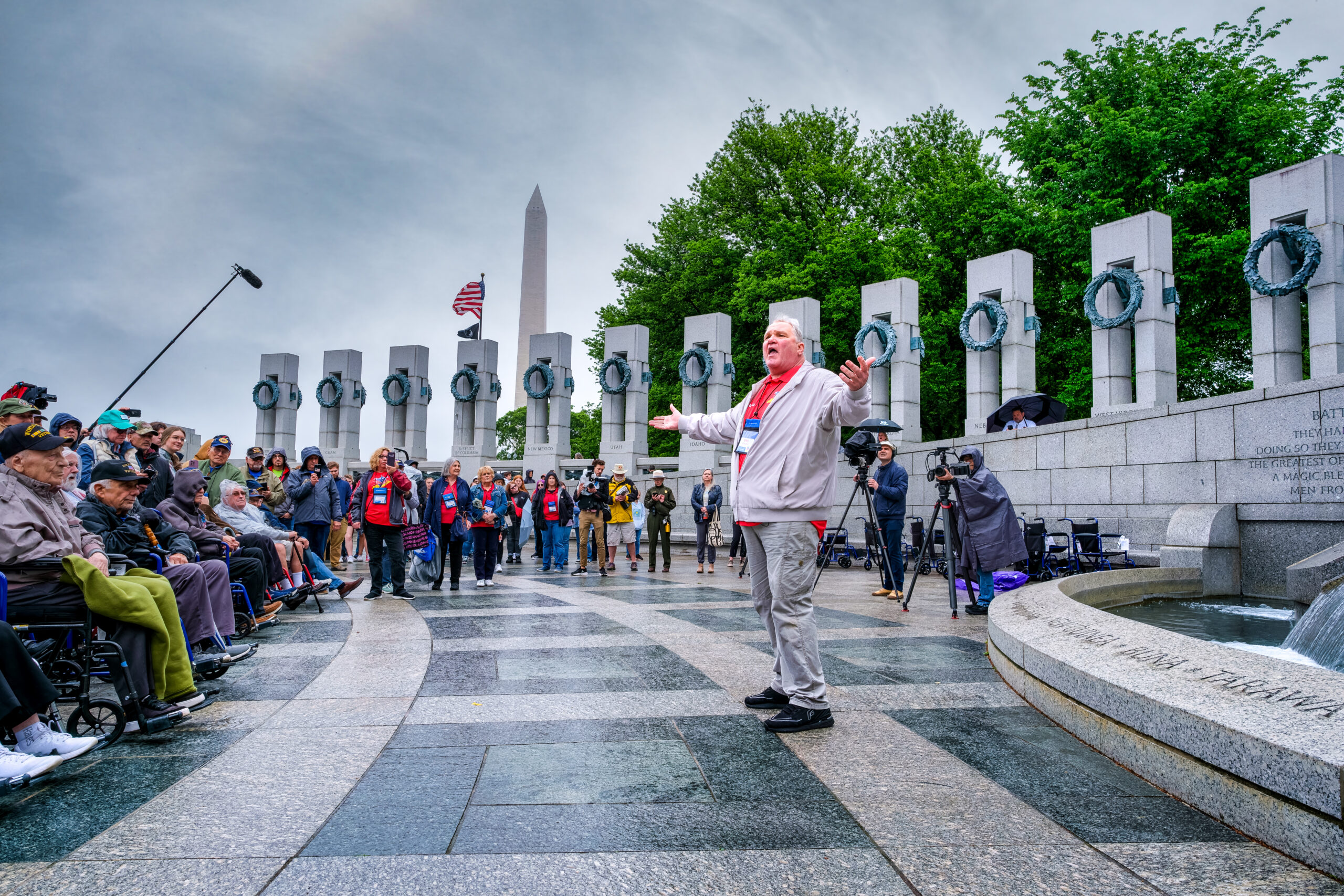 Our veterans received a special honor during their May 4th visit to D.C. Despite the pouring rain, HFLI Guardian Eric Wieboldt of Merrick, belted out his original song, “Welcome Home, My Brother,” which brought tears to veterans and onlookers alike. Eric said he wrote his song “because the Vietnam veterans never received a proper welcome home. My song is an attempt to right that wrong,” he added.