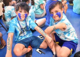 Fifth-graders Vincent Guardino, left, and Michael Foresta proudly represtend the blue team.