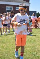 Earlier in the week, students tie-dyed their “Peace, Love, Field Day” T-shirts, way to build a stronger connection to the event. The shirts were colored blue, green, red, or orange to represent their field day teams, and many students matched their shorts, socks, and headbands, colored their hair, and painted their faces to show even more pride.
