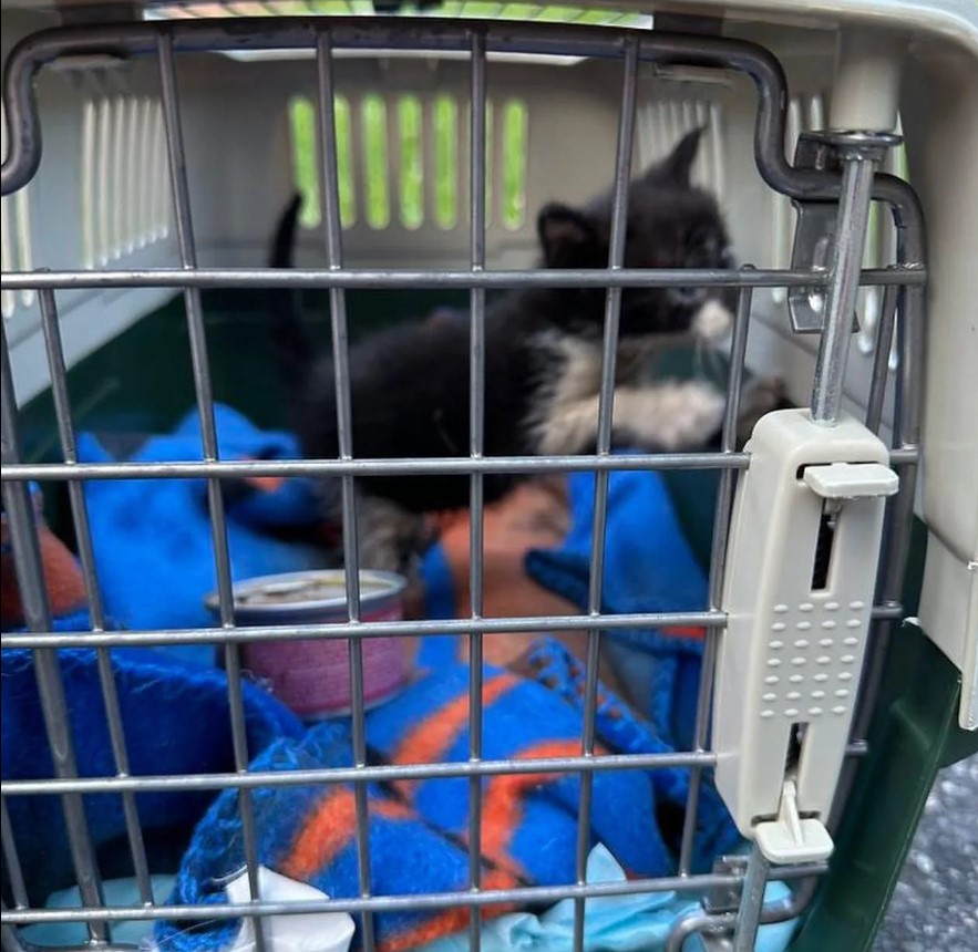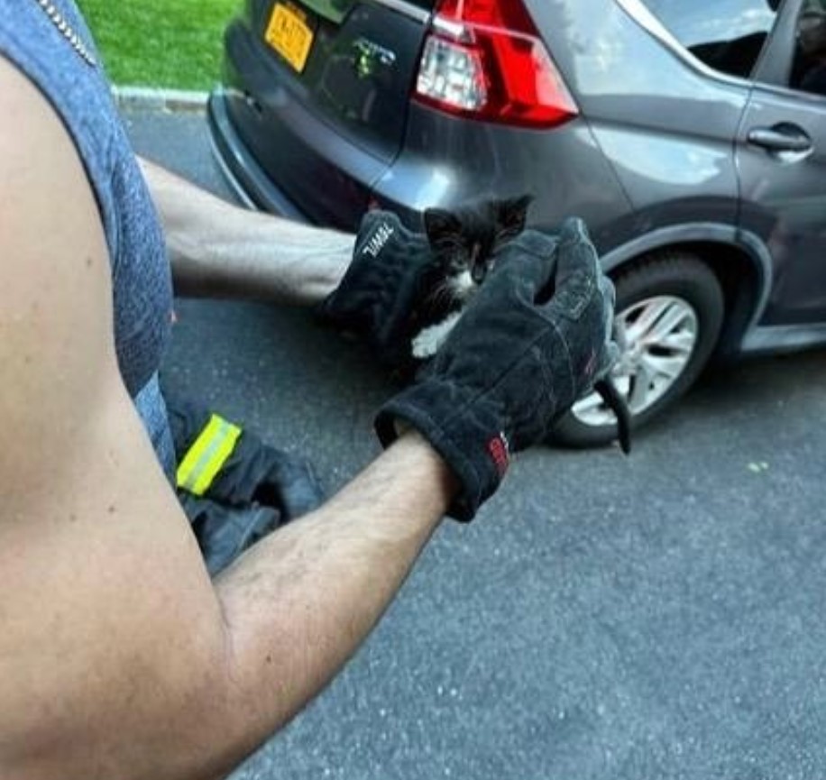 Units 8730, 8759 and 8702 responded to a cat stuck in a car. The crews found a kitten stuck in the car’s engine. After some problem-solving, coaxing and some cat food, they were able to extract him from the compartment.