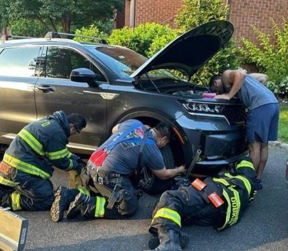 Units 8730, 8759 and 8702 responded to a cat stuck in a car. The crews found a kitten stuck in the car’s engine. After some problem-solving, coaxing and some cat food, they were able to extract him from the compartment.