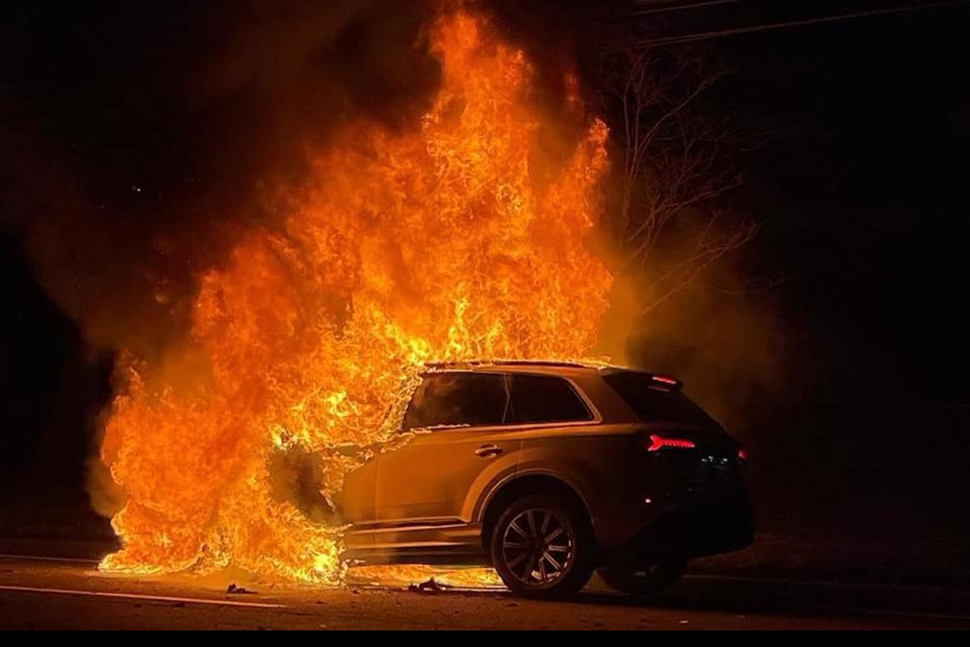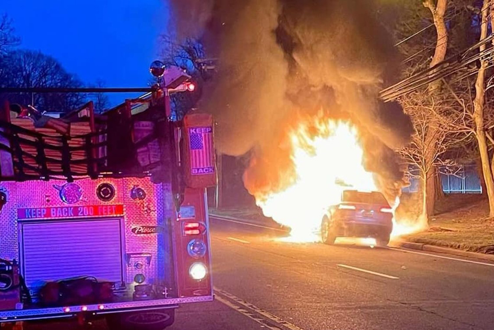 On March 13, Manhasset-Lakeville Fire Department Company 2 was alerted to a report of a vehicle fire on Shelter Rock Road in Manhasset. While responding, the crews of E8725 and TL8720 were advised that police were on scene confirming a car fire. E8725 quickly arrived on scene and stretched the bumper line while the crew of TL8720 secured a hydrant.