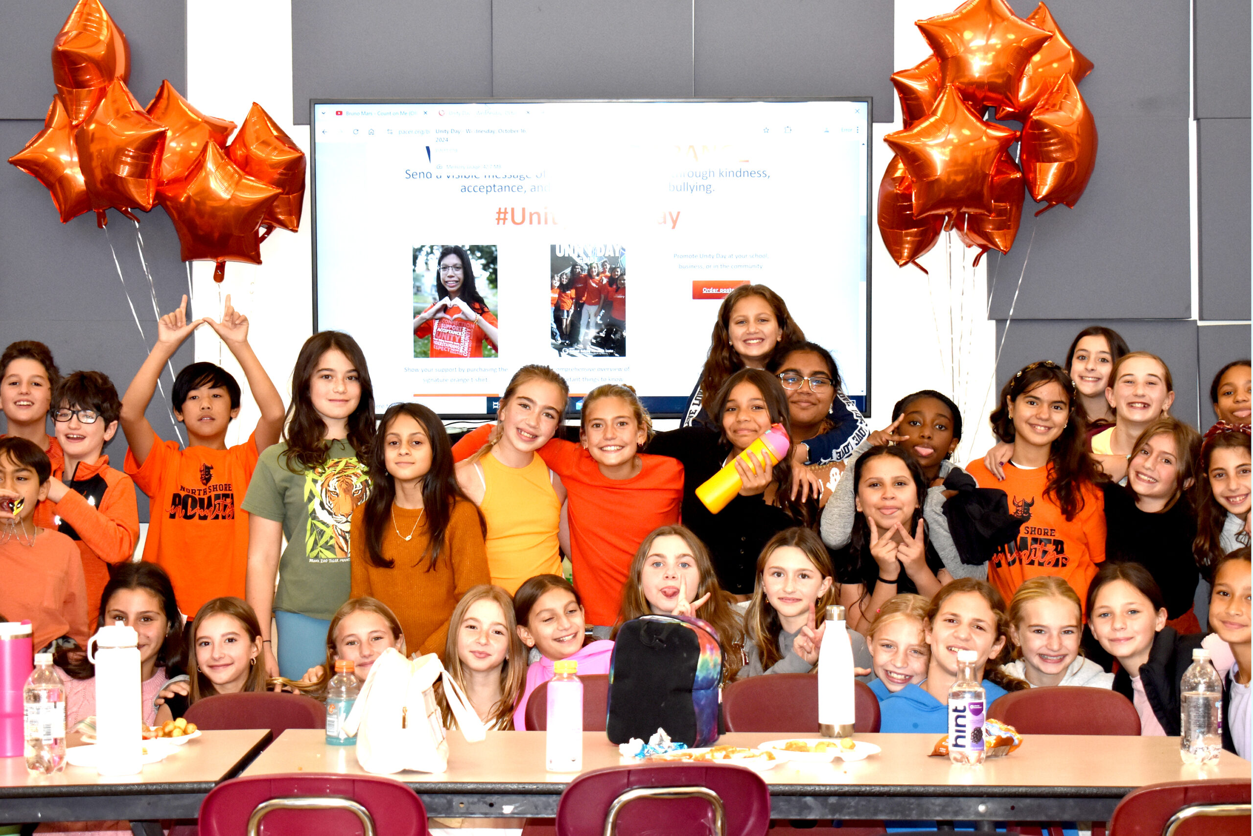 Under the direction of North Shore Middle School guidance counselors Aimee Canzoniero, John Jackson, Flavia Finning, principal Ryan O’Hara, assistant principal Maram MaBrouk and social worker Toni Papetti, students united by wearing orange and participating in Unity Day.