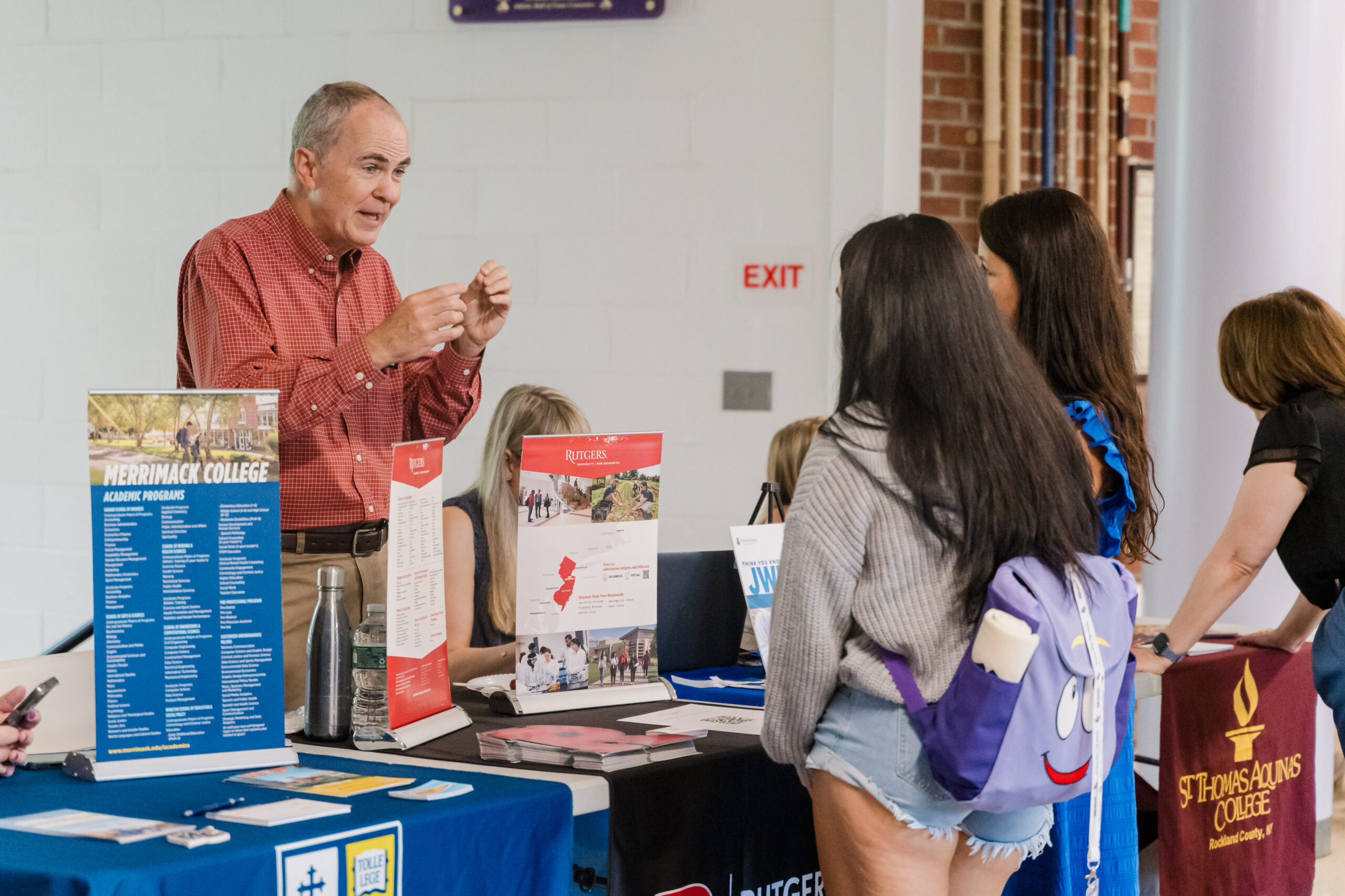 The college fair is an annual event that is offered to students. It is held in the upper lobby of the gym.