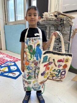 The first craft the students worked on was one-of-a-kind portfolio bags to hold the rest of the crafts the students made throughout the week. Teachers tasked the students with painting their portfolio bags with designs that reflected their interests and identity. By the end of the week, each student’s bag was filled with the new crafts they created each day.