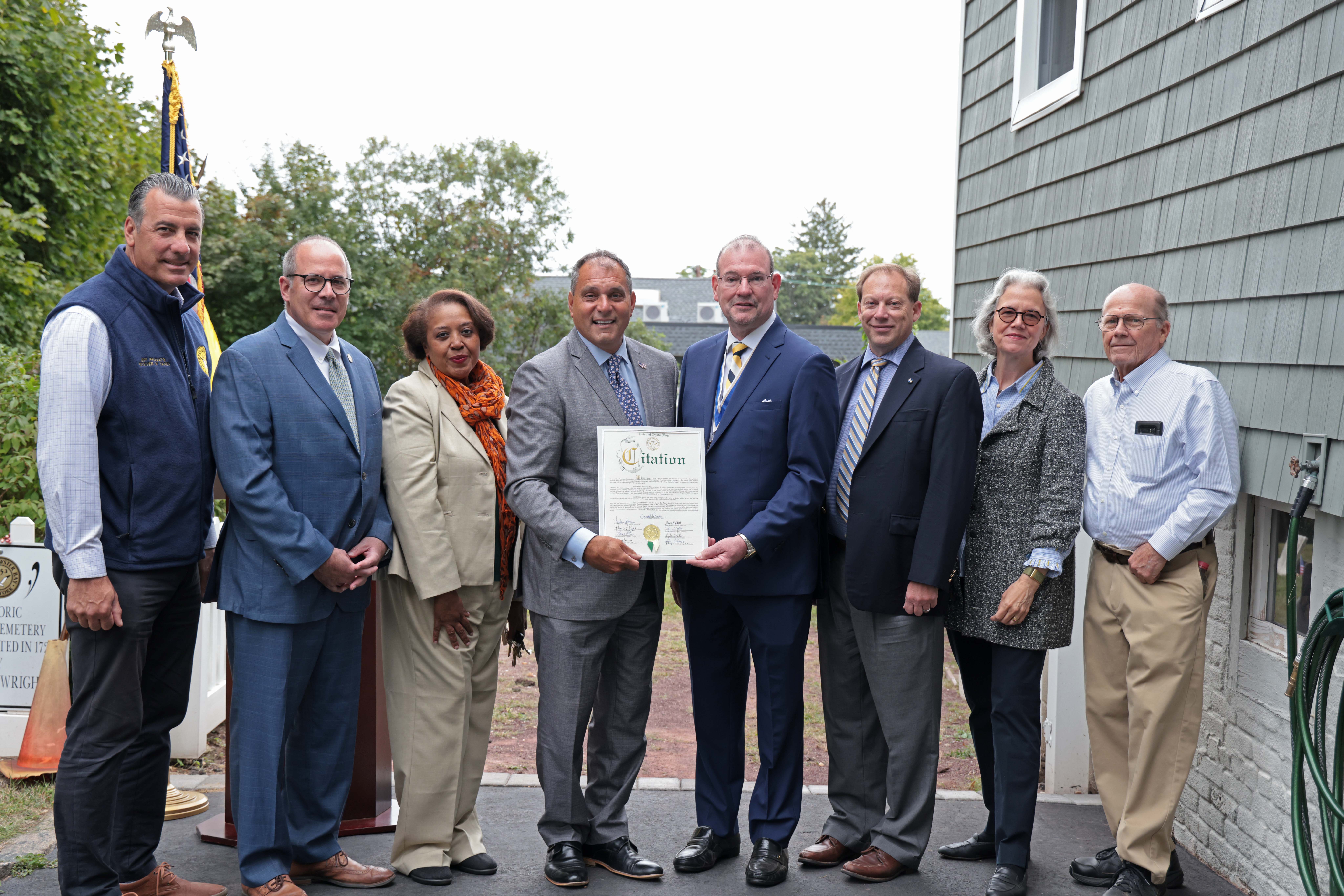 Local residents attended the event, and Saladino presented the Long Island chapter of the Sons of the American Revolution with a citation from the town for their dedication to the project.