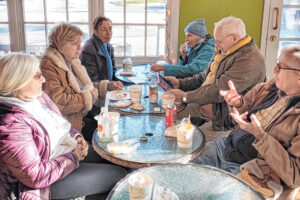 The team pulled the ivy from six trees, and then cleared out those roots to stop future growth. They then raked and bagged up about 10 bags of trash. Next was a walk to Sweet Tomato on north Audrey Avenue, for soup, sandwiches and small talk, said Kassie.