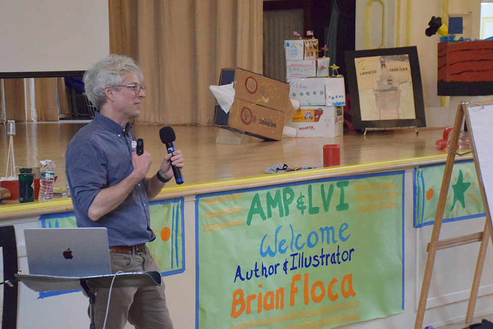 Floca explained how he grew to love writing and drawing as a child and walked students through his process from idea to research to writing and illustrating. Students also had the opportunity to ask Floca how they can create books of their own.