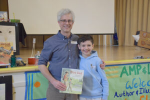 Floca gave students a sneak peak of the upcoming book With Dad that he illustrated. Locust Valley Intermediate student Griffin Bathie and his grandfather acted as the models for the reference photos that Floca turned into the illustrations in the book. Floca gifted Bathie one of the first copies of the book before it releases in May.