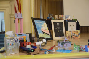 Locust Valley Intermediate and Ann MacArthur Primary students drew their own renditions of Floca’s book covers and created vehicles out of household items as many of Floca’s books center around travel.