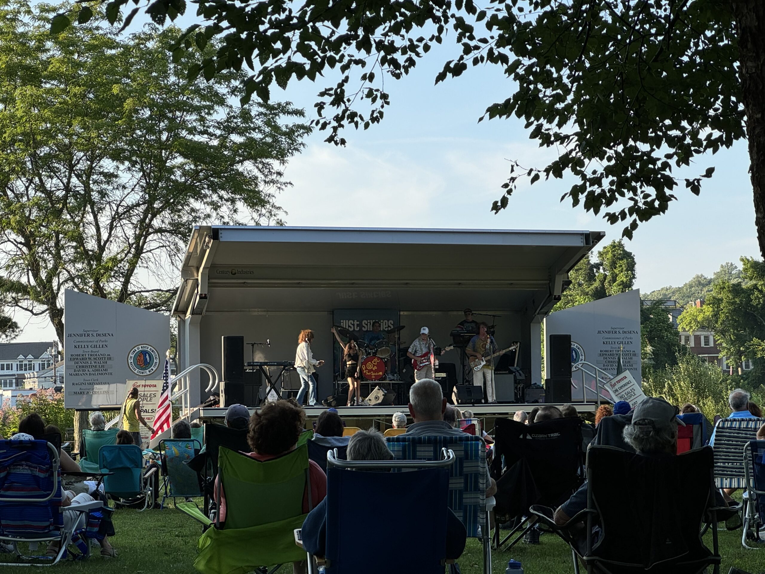 Just Sixties, the longest-running 1960s tribute band in the United States, rocked the house in a July 30 concert at Gerry Pond Park in Roslyn. Hosted by the Town of North Hempstead and the Roslyn Chamber of Commerce, the concert treated the crowd to a night of 60s hits like “Daydream Believer” by The Monkees, “Going Up the Country” by Canned Heat and “Proud Mary” by Creedence Clearwater Revival. The event was sponsored by Penn Toyota, Delicacies Delicatessen, Blank Slate Media (now a part of Schneps Media), Pierce Country Day Camp and Holiday Farms.