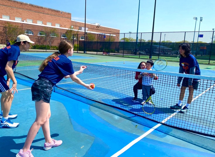 Throughout this past Spring, a group of 26 volunteers comprised of JV and Varsity Tennis Team players led five one-hour sessions on the Manhasset Secondary School tennis courts with 10 participant students. This met our ideal participant-to-volunteer ratio, where 2-3 volunteers worked directly with each child. Through fostering conversations and ensuring positive experiences, the clinic aimed to brighten the day of every participant, providing them with a comfortable and supportive setting.