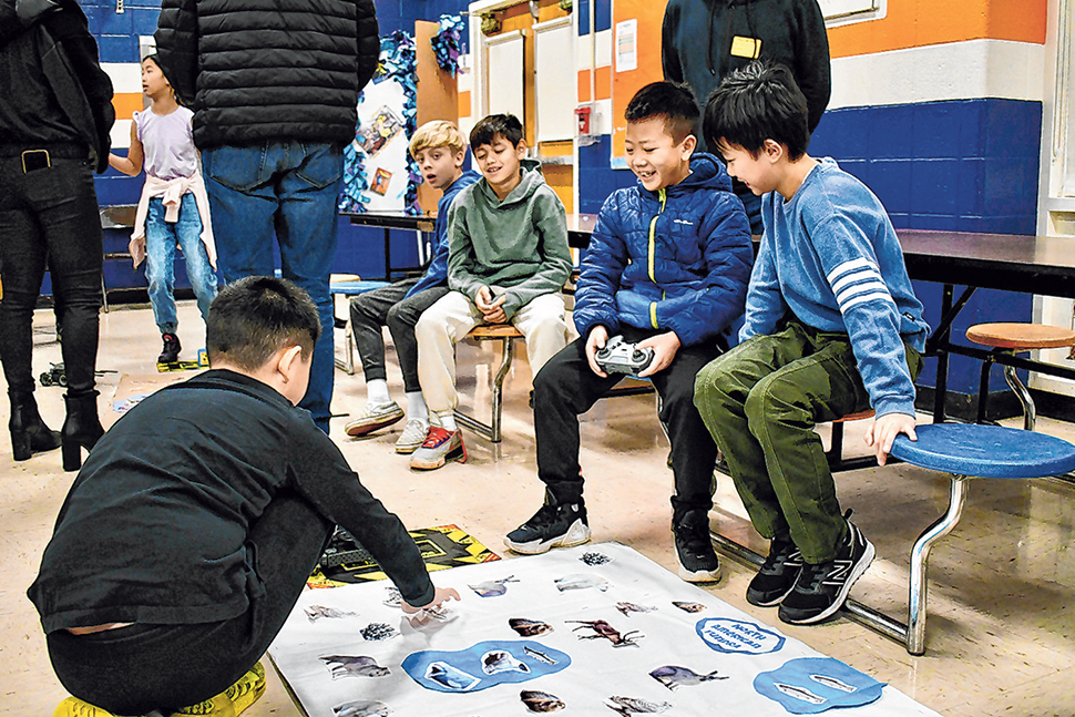 Munsey Park fifth-graders showed their family members how to complete the challenge during the school’s Robotics Expo. (Photos by Manhasset Public Schools)