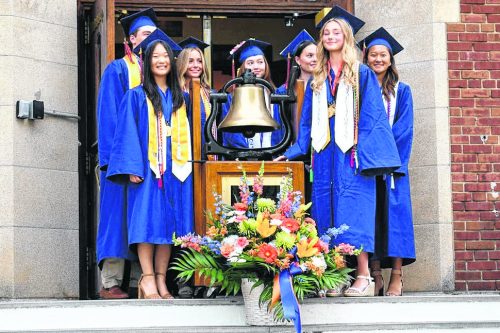 Principal Richard Roder told a story about a tightrope walker who made multiple passes over Niagra Falls doing more and more difficult stunts each time. The daredevil then reportedly asked a crowd whether they believed he could carry a person across the tightrope in a wheelbarrow. The crowd emphatically cheered. The tightrope walker then asked who would get into the wheelbarrow and they responded with silence. Roder then explained, “You’re part of a community that supports and believes in you and your potential. When you need guidance lean on your family, your friends, defend your mentors, and never be afraid to ask for help.”