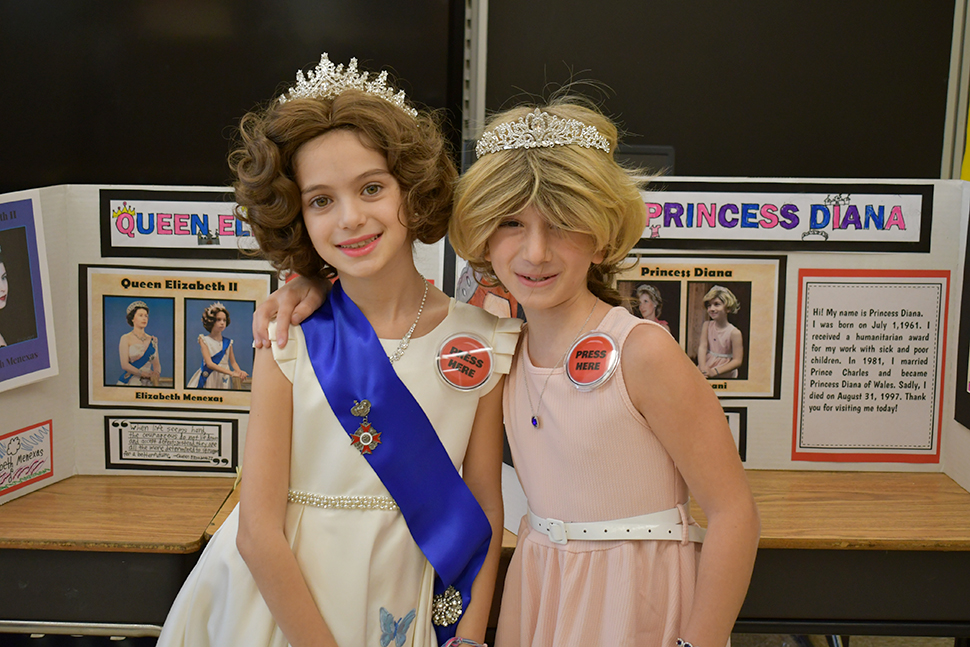 The students wore red buttons and froze like wax figures in front of their biography projects. With the “press” of a button, each student came to life and shared interesting facts about their researched individual. Family members enjoyed walking around and learning from the young researchers. The event was a great way for students to practice their public speaking skills and to showcase all that they learned.