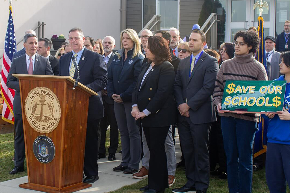 “The loss of 4.3 million in foundation aid in a single year is devastating for our district, particularly since the cut comes without warning or preparation. No district can absorb that level of loss without cuts to programs, which ultimately affect our students, 30 percent of whom live below State poverty thresholds. We urge our State legislators to seek a reprieve so that we can maintain our student programs, particularly as we continue to recover from the pandemic,” said Dr. Jennifer Gallagher, Superintendent of the Long Beach City School District.