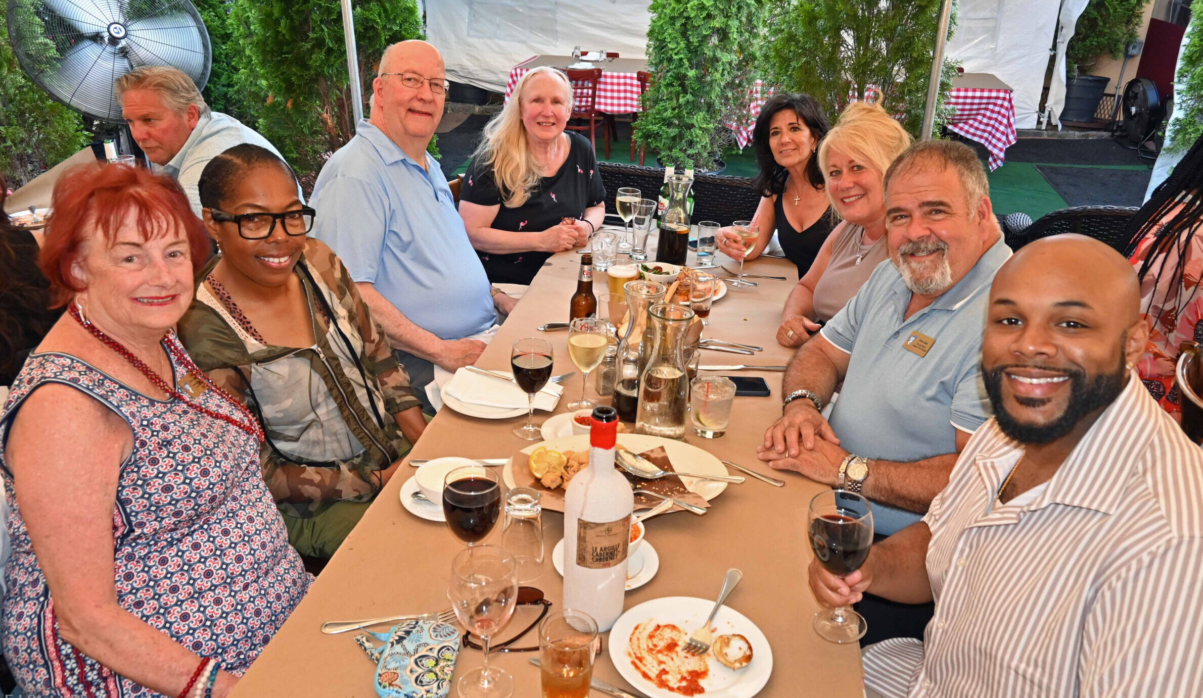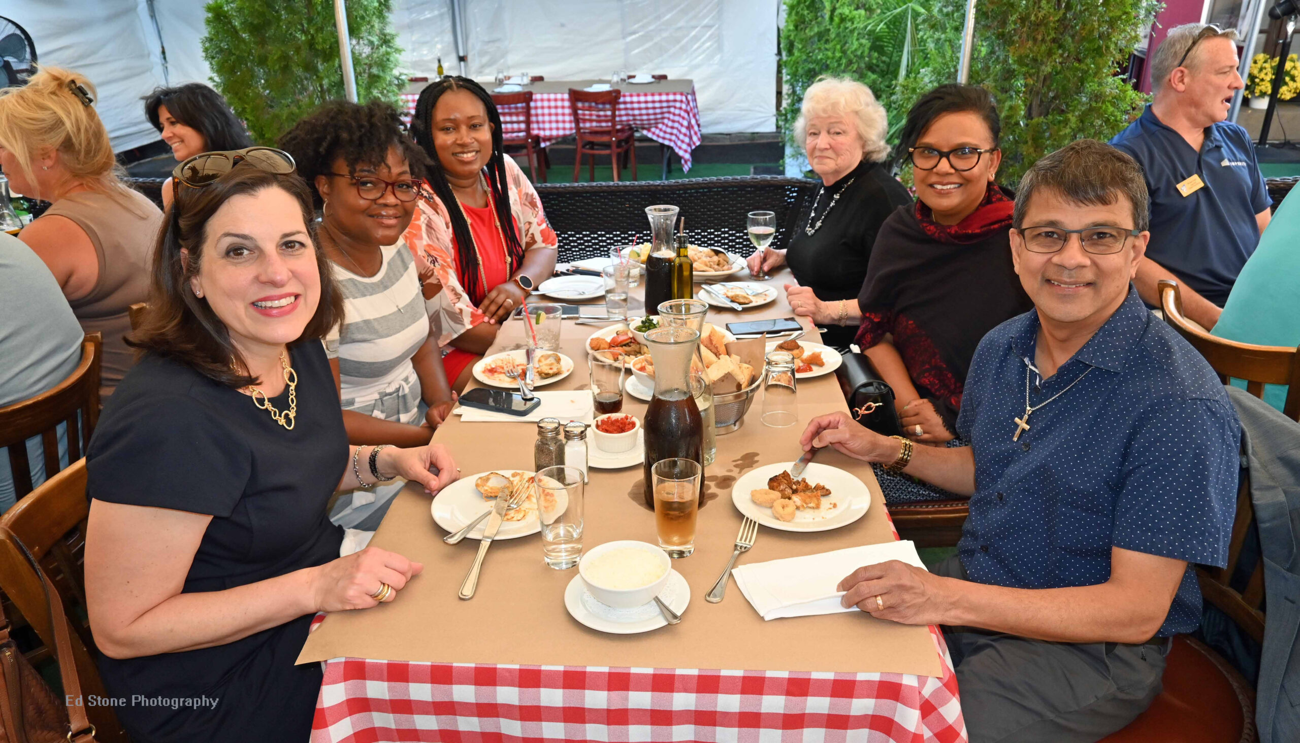 The Greater New Hyde Park Chamber of Commerce hosted its June meeting at Uncle Bacala’s. The restaurant specializes in Italian cuisine and seafood. The chamber hosted its event in the restaurant’s outdoor tent.