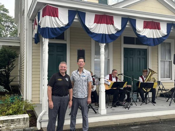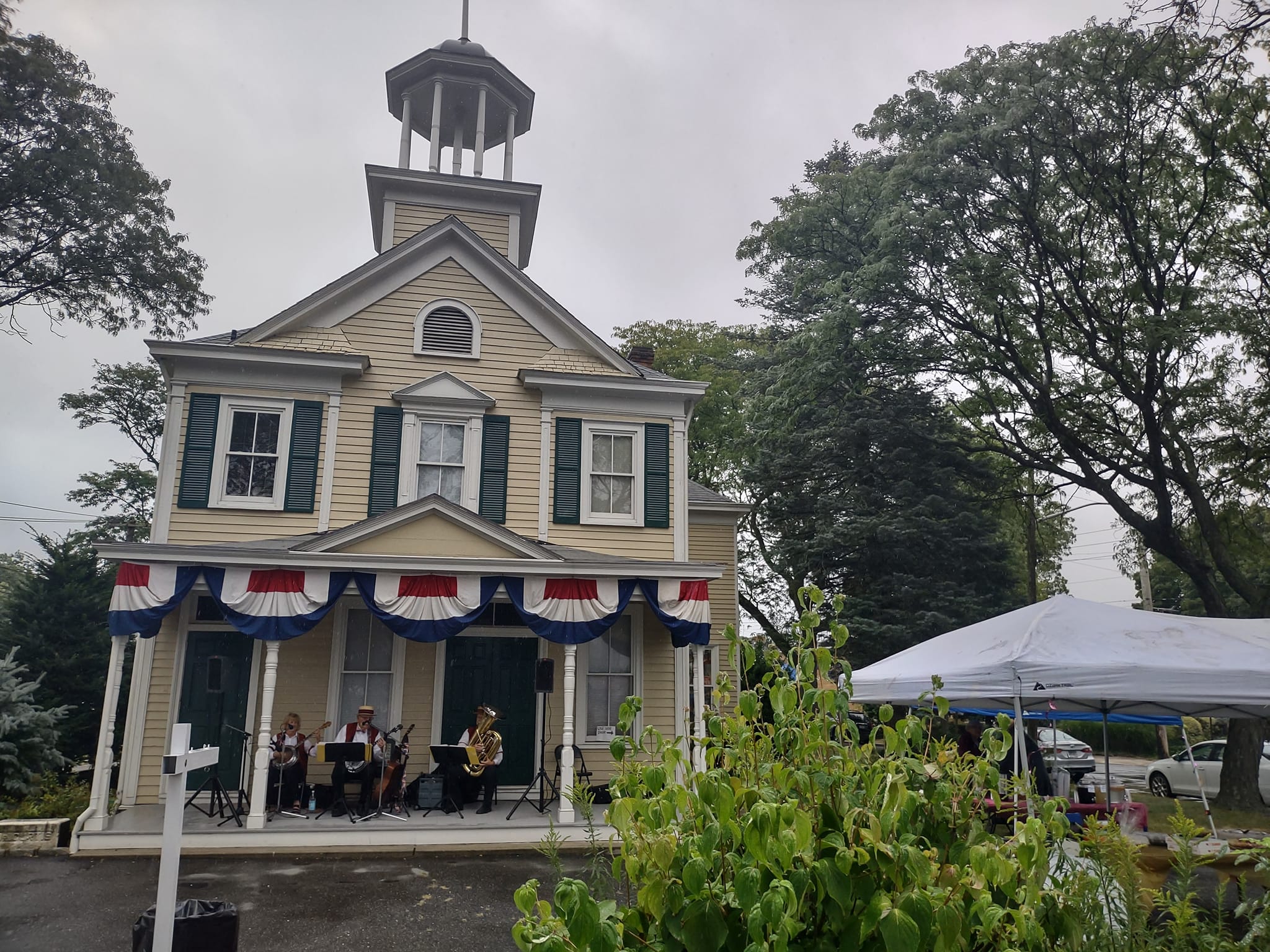 The museum festooned with patriotic bunting, hosting the Banjo Rascals. (Photos courtesy of the Hicksville Historical Society)