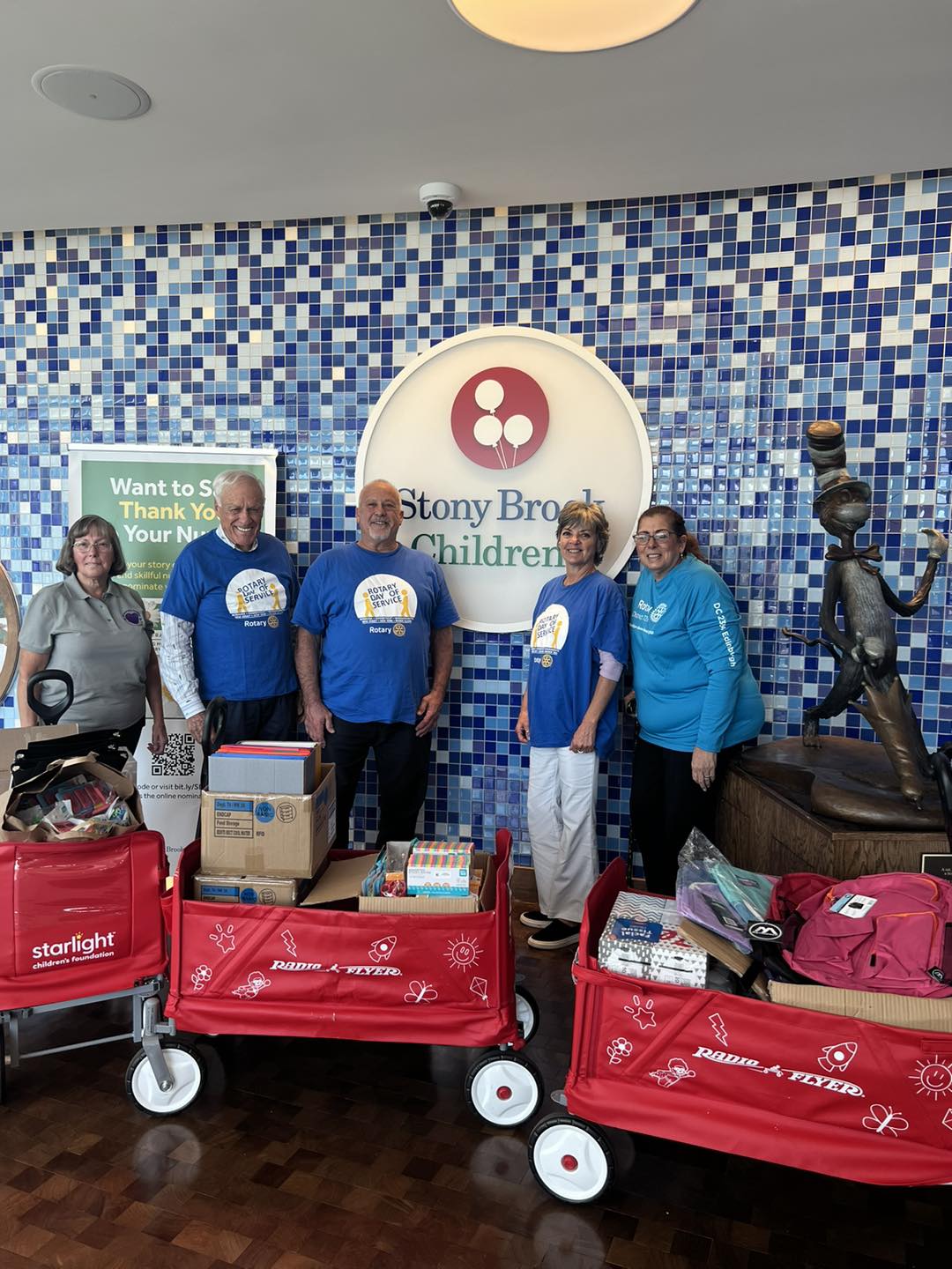 The Hicksville-Jericho Rotary Club, in partnership with The Sarah Grace Foundation, recently delivered 48 new backpacks and much-needed school supplies to Stony Brook Cancer Center and Cohen Children’s Medical Center.