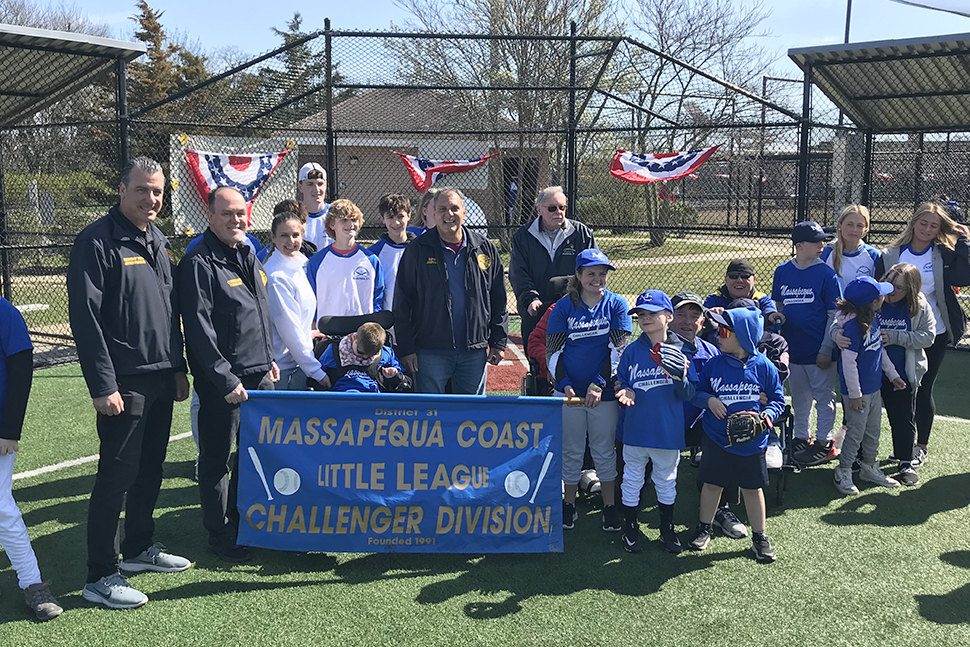 Oyster Bay Town Supervisor Joseph Saladino (center), Councilman Thomas Hand (second from left), and Receiver of Taxes Jeff Pravato (first on left) kicked off Massapequa Challenger League’s 2024 Baseball Season with an Opening Day celebration. This league provides special needs children and young adults with the opportunity to enjoy the full benefits of Little League baseball at a level structured to their abilities. All home games are played at John J. Burns Town Park in Massapequa on an artificial surface and in an enjoyable and safe environment to help develop players’ social skills and build self-esteem. If you’d like to volunteer to assist Massapequa Challenger players, please visit https://massapequachallenger.com/