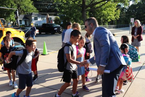 Principals, teachers and staff from Schrieber High School, Weber Middle School, and the elementary schools Guggenheim, Daly, Sousa, Manorhaven and Salem greeted students on the first day of the 2024-25 academic year. Superintendent of schools Michael Hynes made the rounds to visit classes across all seven schools in the district.