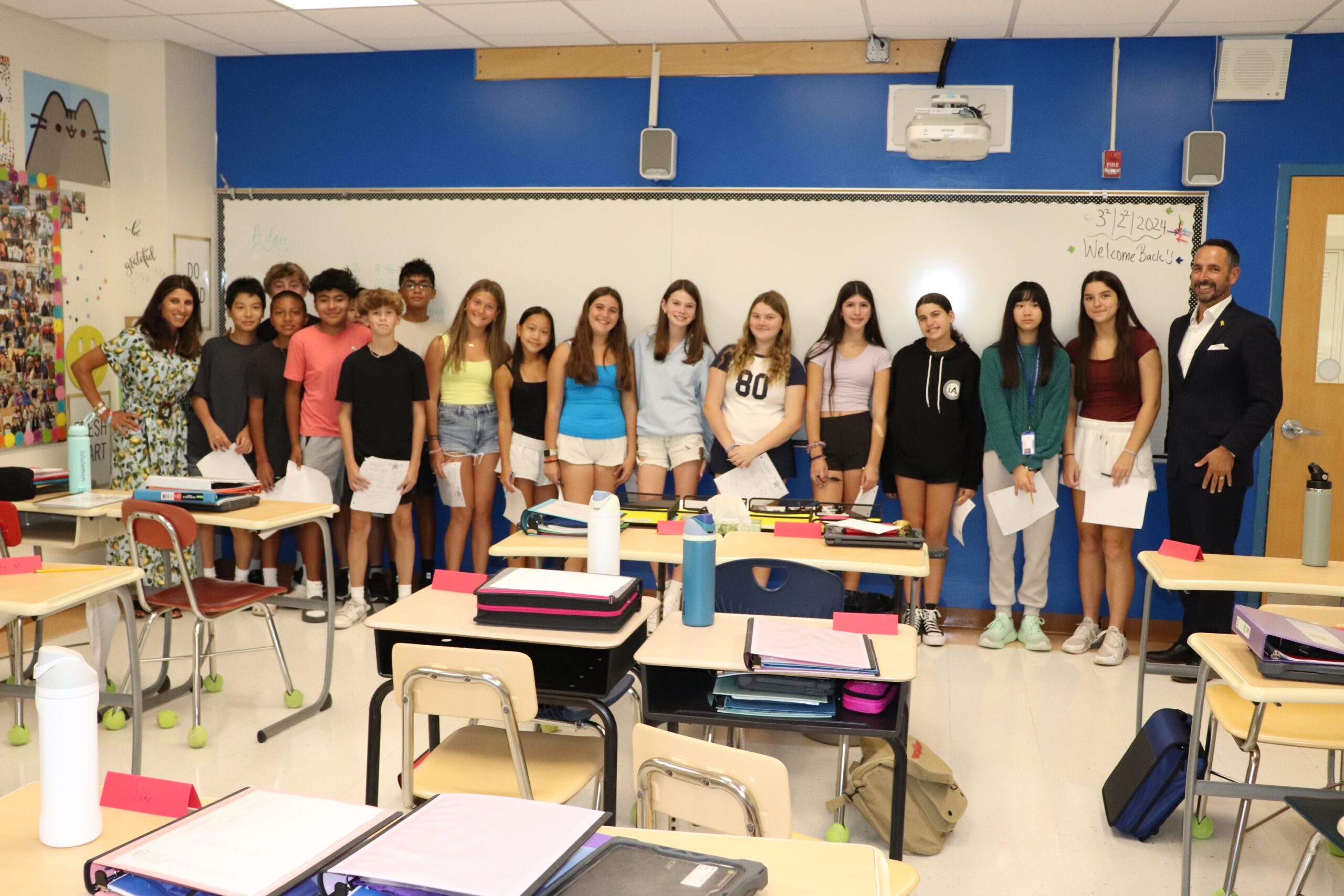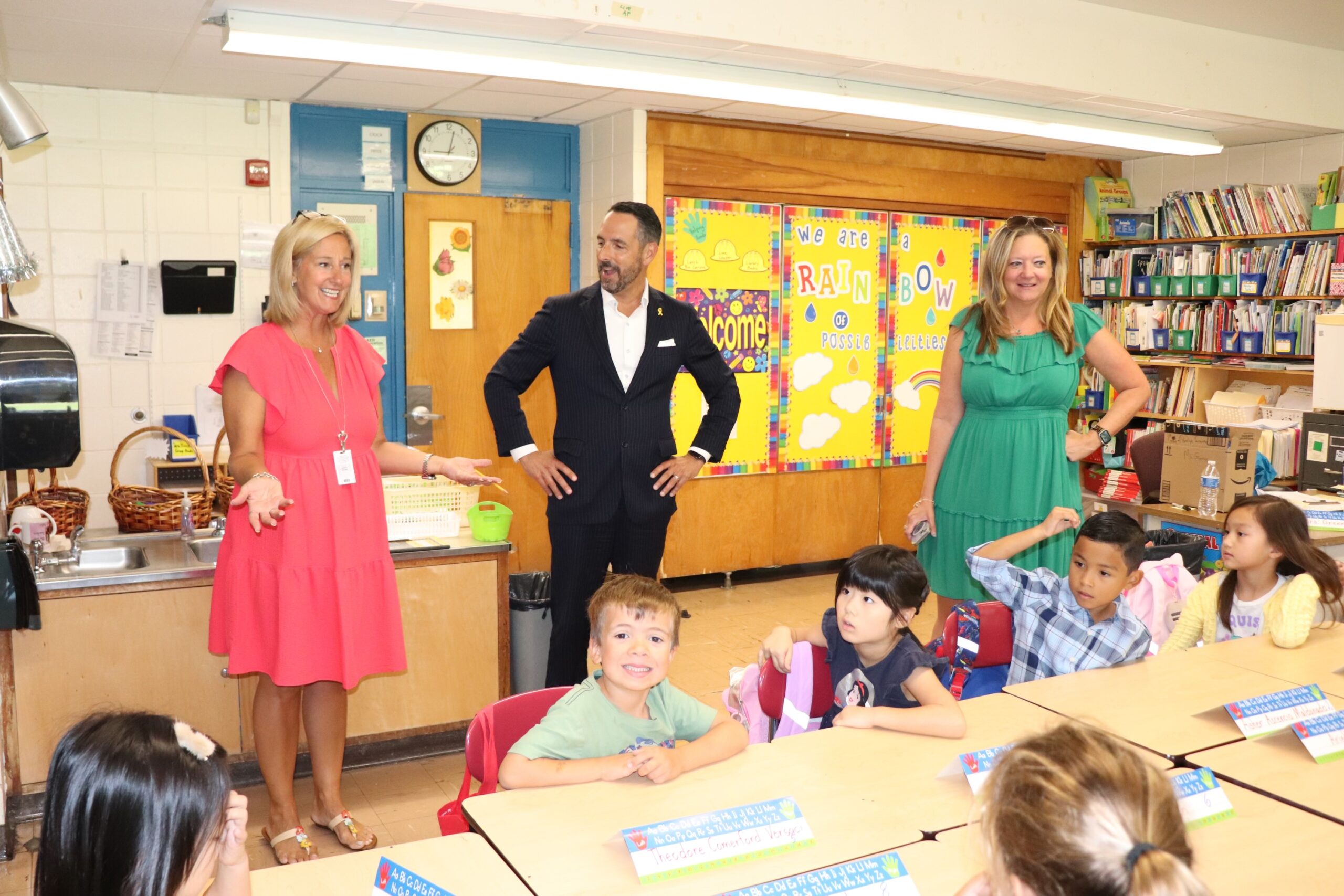 Principals, teachers and staff from Schrieber High School, Weber Middle School, and the elementary schools Guggenheim, Daly, Sousa, Manorhaven and Salem greeted students on the first day of the 2024-25 academic year. Superintendent of schools Michael Hynes made the rounds to visit classes across all seven schools in the district.