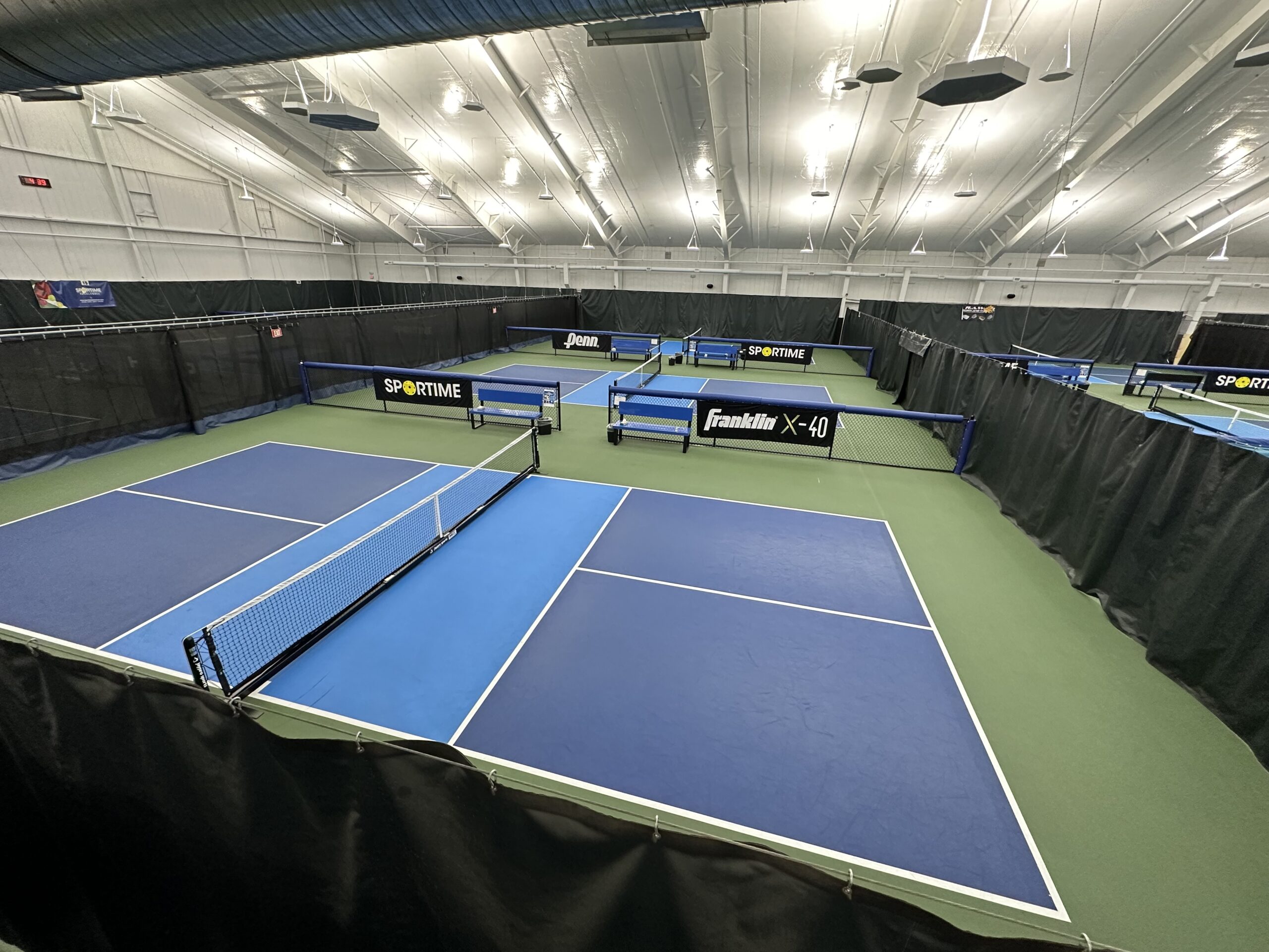 The renovation included reorganizing the space usage of the courts to include pickleball and tennis courts. In one wing of the building, there were four hard courts for tennis, and in another wing, there were 13 har-tru courts, clay courts.