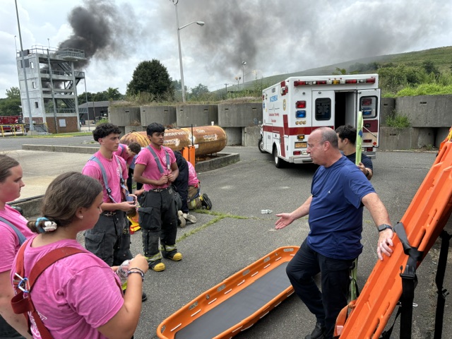 The teens, aged 14 to 18, receive intense firefighting training at the camp, where they participate in various courses, including mask confidence, search and rescue, forcible entry, emergency evacuation procedures, ground ladders, fire extinguisher drills, two-minute drills, second-story bailouts, and ropes, as well as live car and warehouse fires.