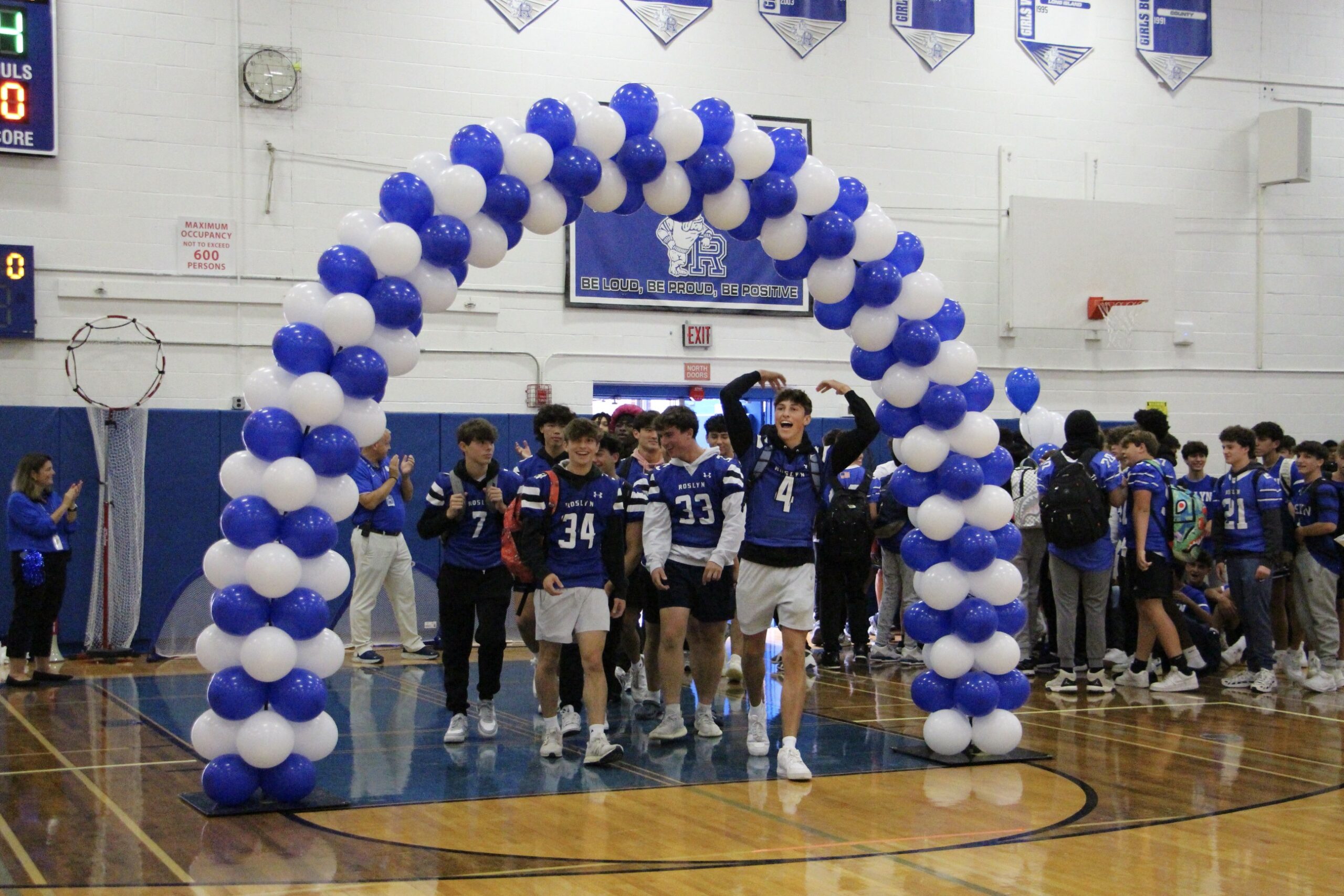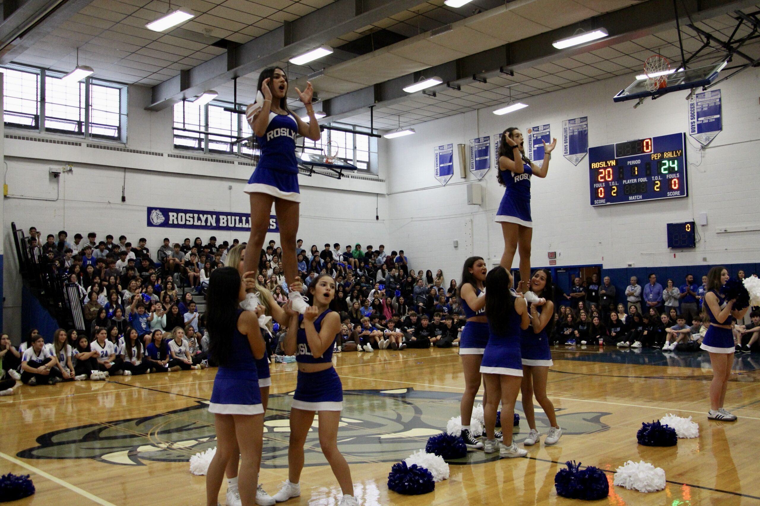 On Friday, Sept. 27, the high school hosted a pep rally in the gym. Students, faculty, and staff filled the bleachers to cheer on all the sports teams, watch students compete in several games, and see a performance by the Roslyn High School Cheerleaders.
