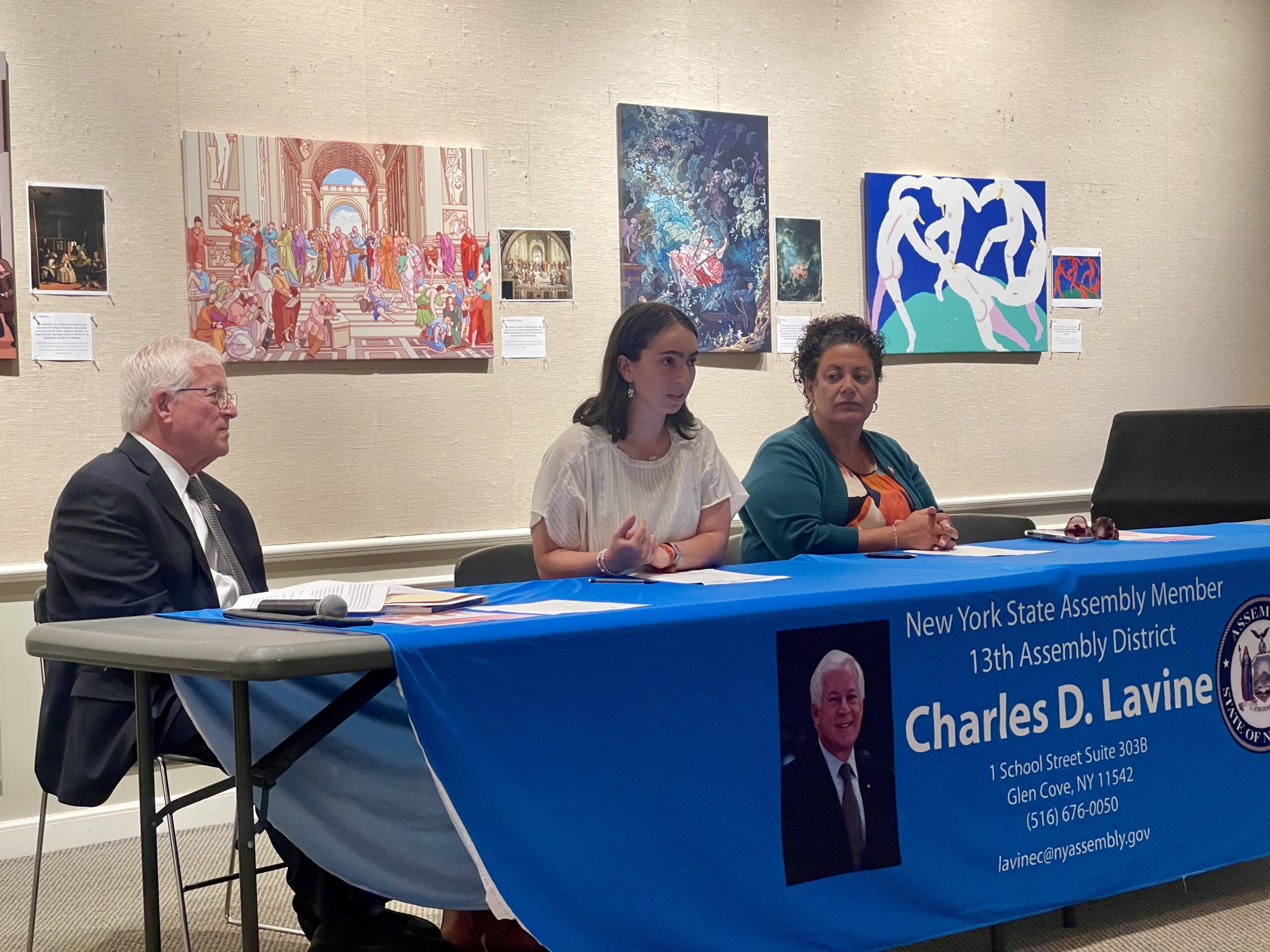 For the first meeting at the Bryant Library, Lavine was joined by state Assembly Member Gina Sillitti, Democratic Committeeman Robert Zimmerman, state Senate District 7 candidate Kim Keiserman and Arlo Fleischer, the Nassau Regional Organizer of the New York Civil Liberties Union.