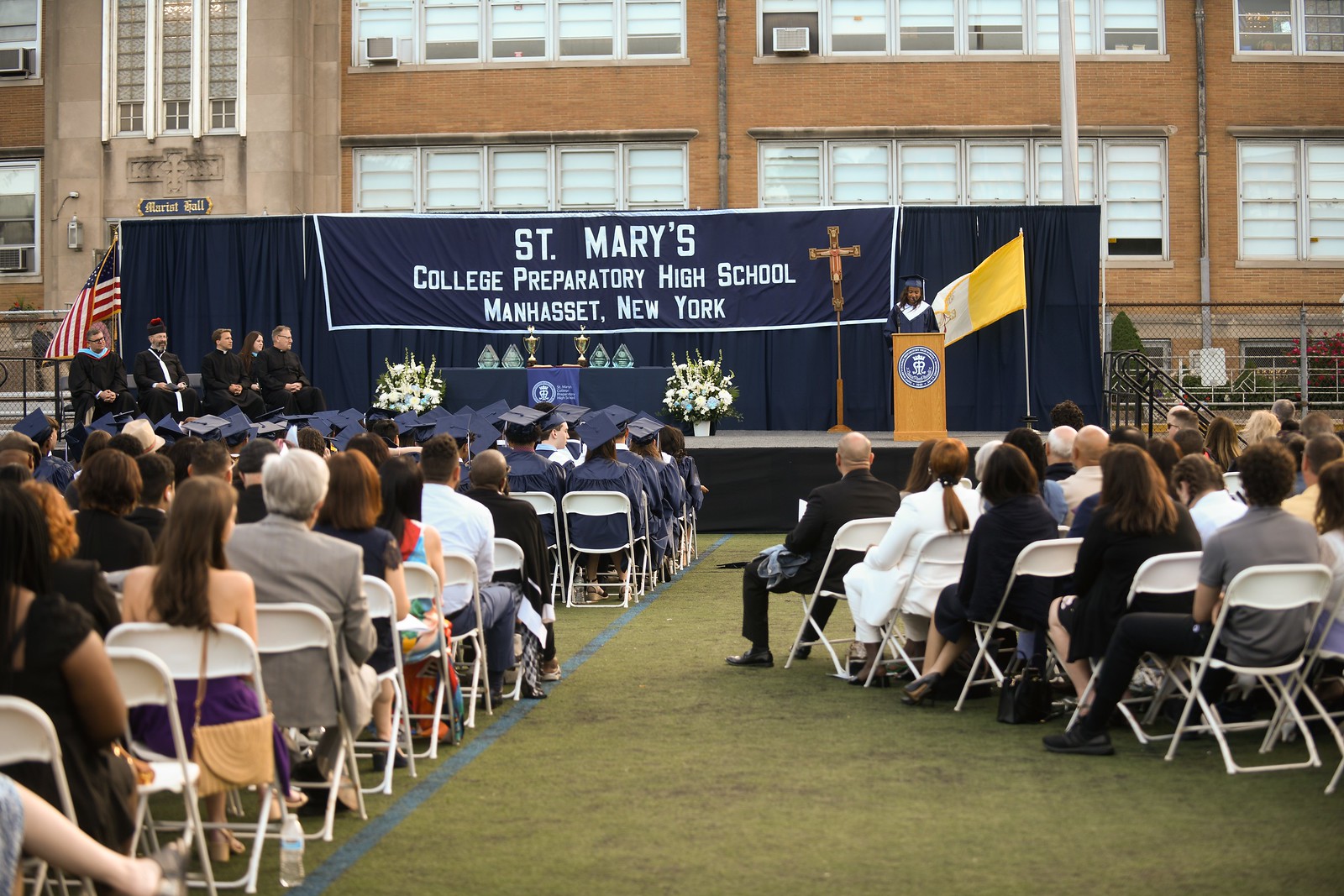 “The glorious blue skies over Marist Hall on Thursday, May 30, set the stage for the 71st Commencement Exercises for Saint Mary’s High School as the Class of 2024 processed onto Denihan Field with Pomp and Circumstance livening their spirited marching cadence. The evening ceremony was a wonderful celebration for all in attendance, especially the graduates, who had much to be proud of after their hard work, perseverance, and resilience over the past four years. As a community, we extend our heartfelt congratulations to our newest St. Mary’s alumni family members,” noted Eileen Symmons, their fellow alum and director of communications for the Church and Schools of St. Mary.