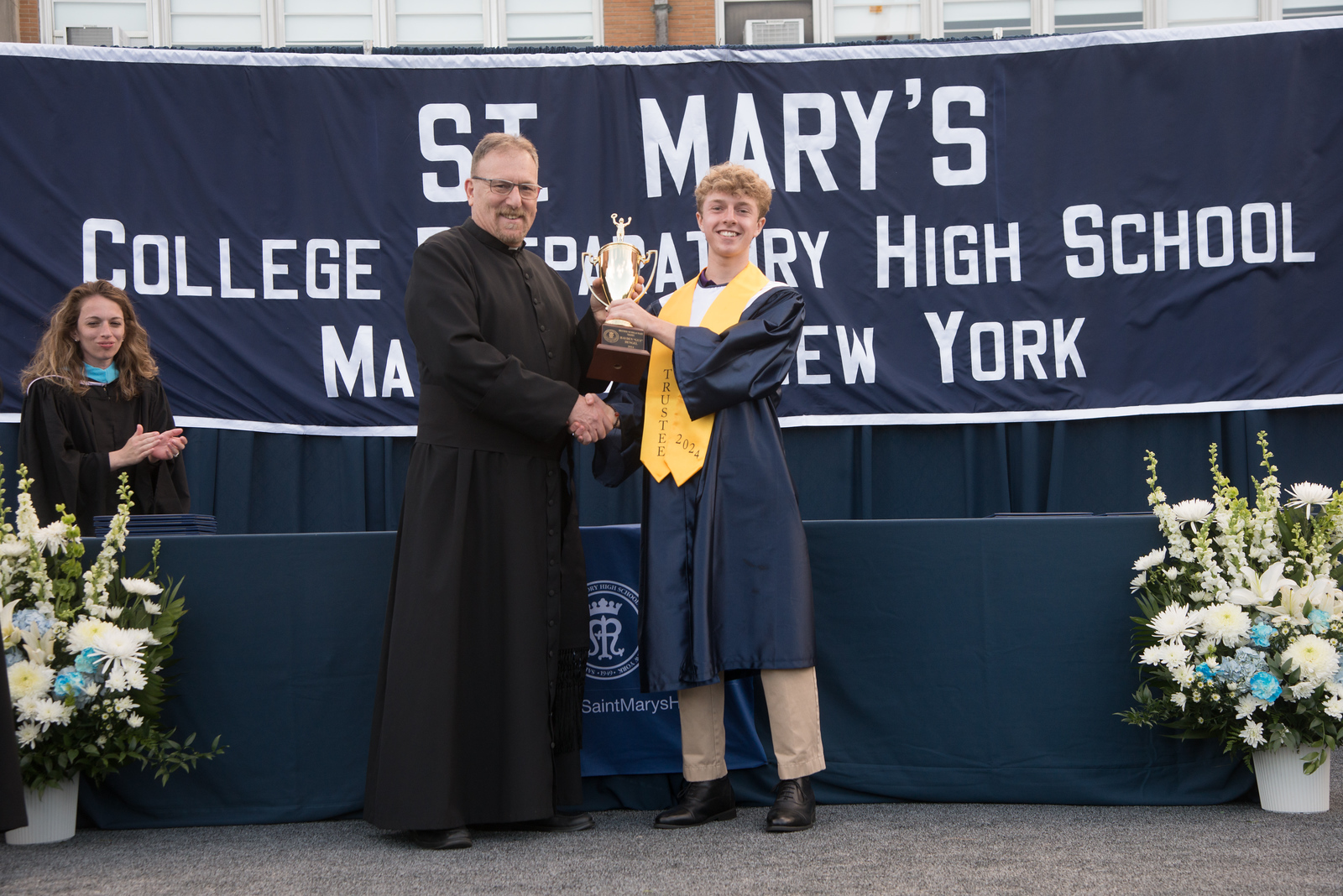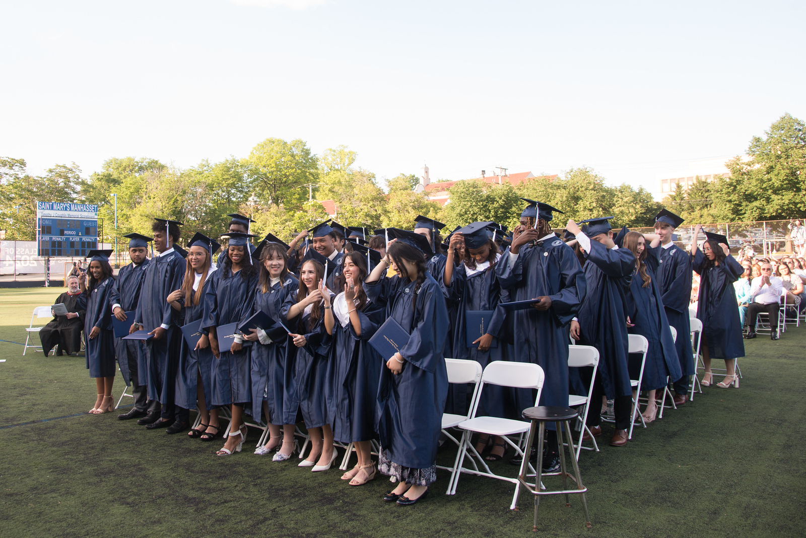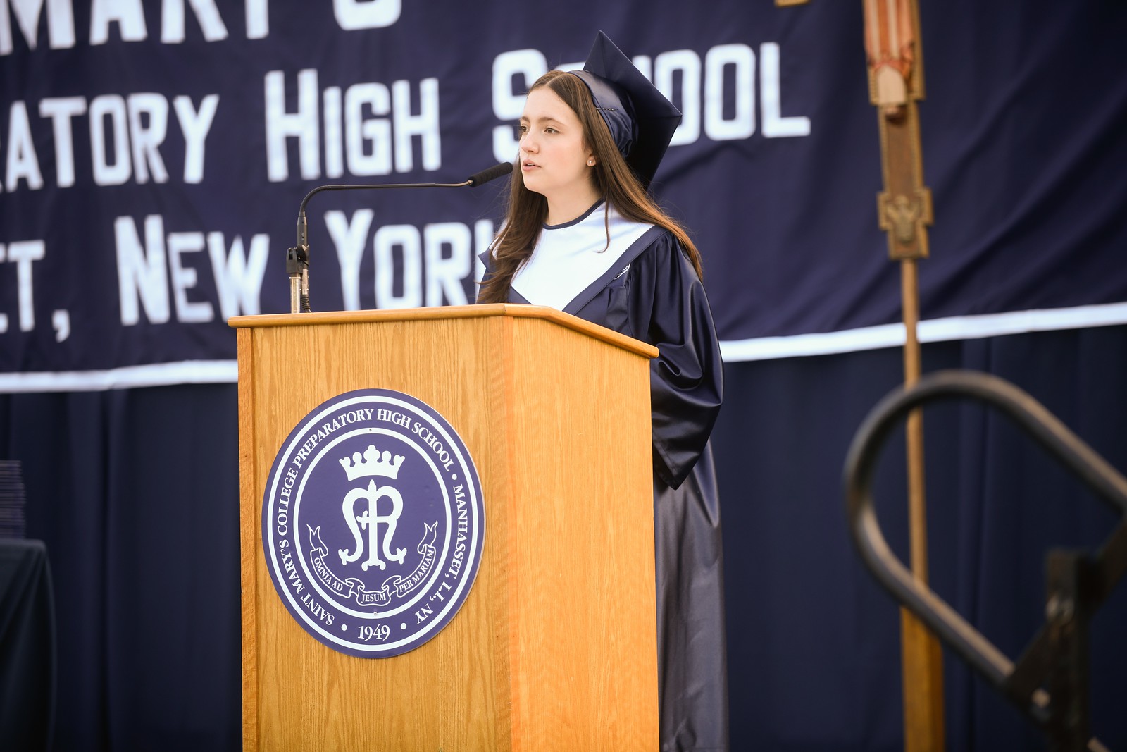 “The glorious blue skies over Marist Hall on Thursday, May 30, set the stage for the 71st Commencement Exercises for Saint Mary’s High School as the Class of 2024 processed onto Denihan Field with Pomp and Circumstance livening their spirited marching cadence. The evening ceremony was a wonderful celebration for all in attendance, especially the graduates, who had much to be proud of after their hard work, perseverance, and resilience over the past four years. As a community, we extend our heartfelt congratulations to our newest St. Mary’s alumni family members,” noted Eileen Symmons, their fellow alum and director of communications for the Church and Schools of St. Mary.