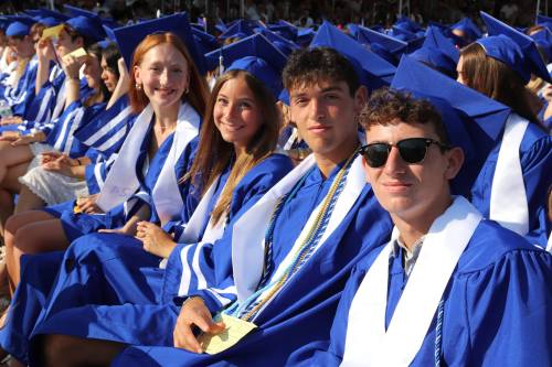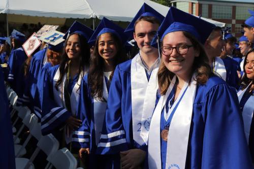 “As I look out to the sea of blue, I see our future architects and engineers, educators, investors, doctors, nurses, mechanics, musicians, and the list goes on and on. We are just so proud of you seniors,” said Hynes.