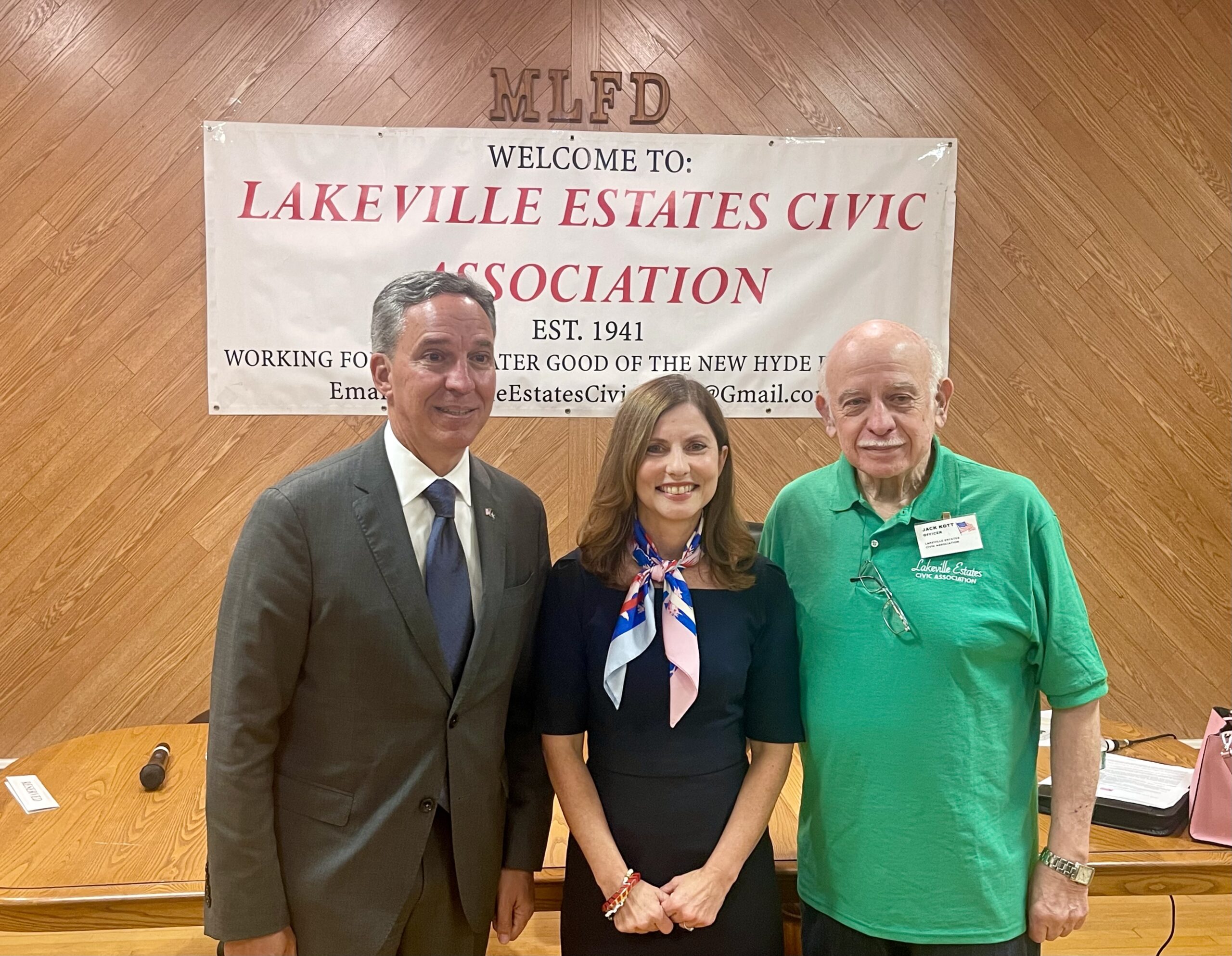 From the left: State Sen. Jack Martins, Kim Keiserman and Lakeville Estates Civic Association member Jack Kott (Photo by Julie Prisco)