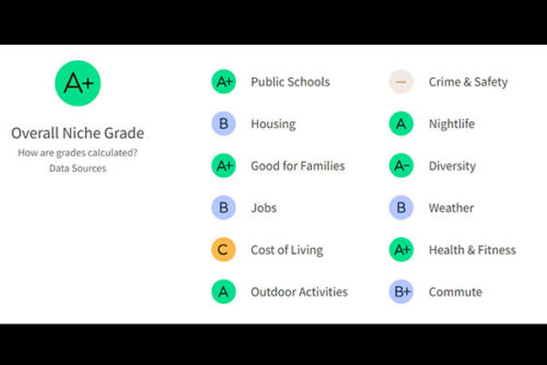 Niche says that its grades and rankings are calculated using dozens of public data sets and millions of reviews. Niche’s data scientists gather data and reviews from public data sources and reviews from residents, parents and students. After the data is collected, the team analyzes and compares the information to produce the grades and rankings.