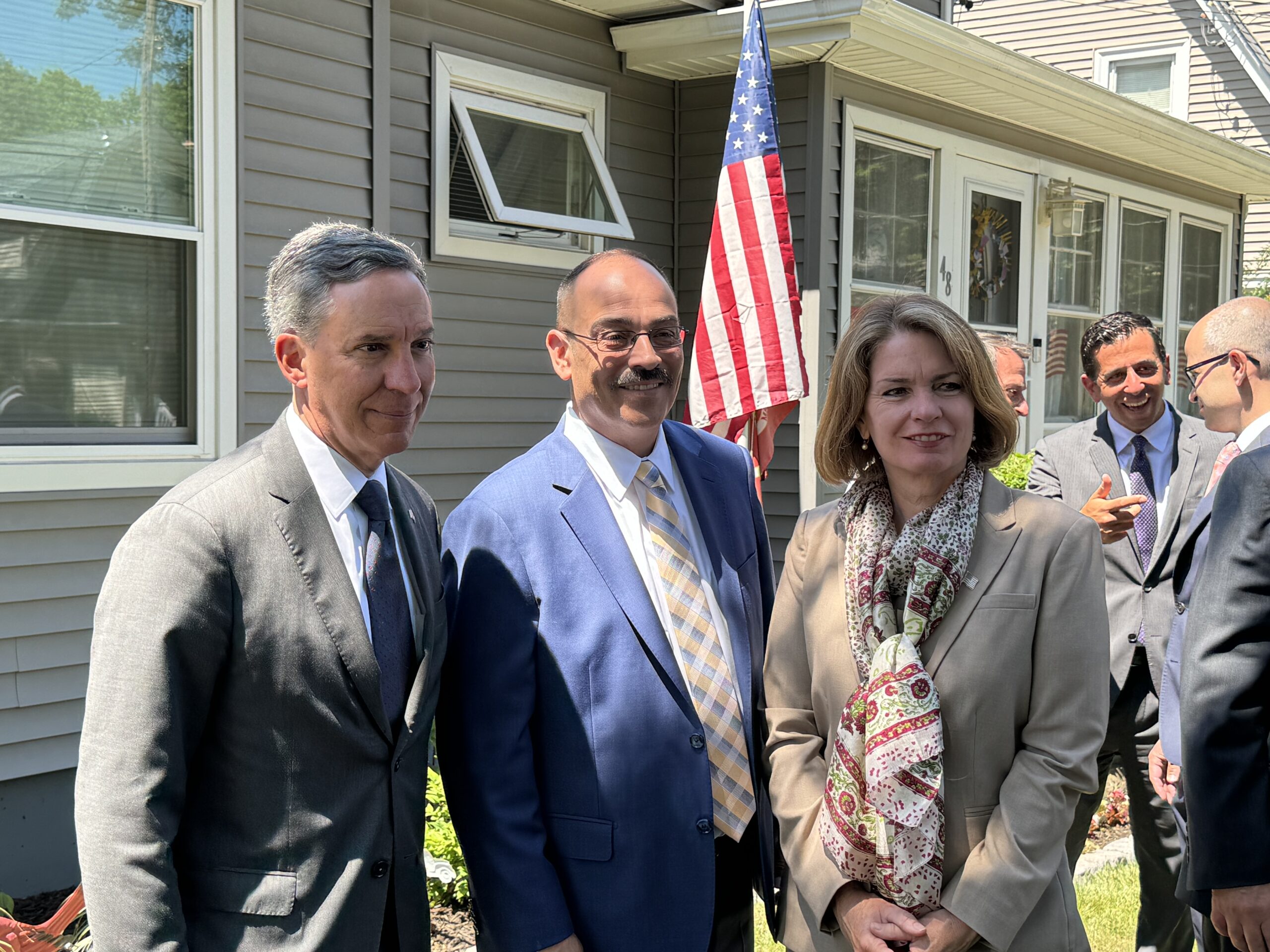 Standing in front of a residential Floral Park home, alongside governmental leaders from all over Nassau County, North Hempstead Town Supervisor Jennifer DeSena joined Town of Hempstead Supervisor Don Clavin to announce a joint petition against the Federal Aviation Administration (FAA) on behalf of residents living near airports who are contending with low-flying planes, deafening air traffic noise, air pollution, and other aeronautical disturbances.