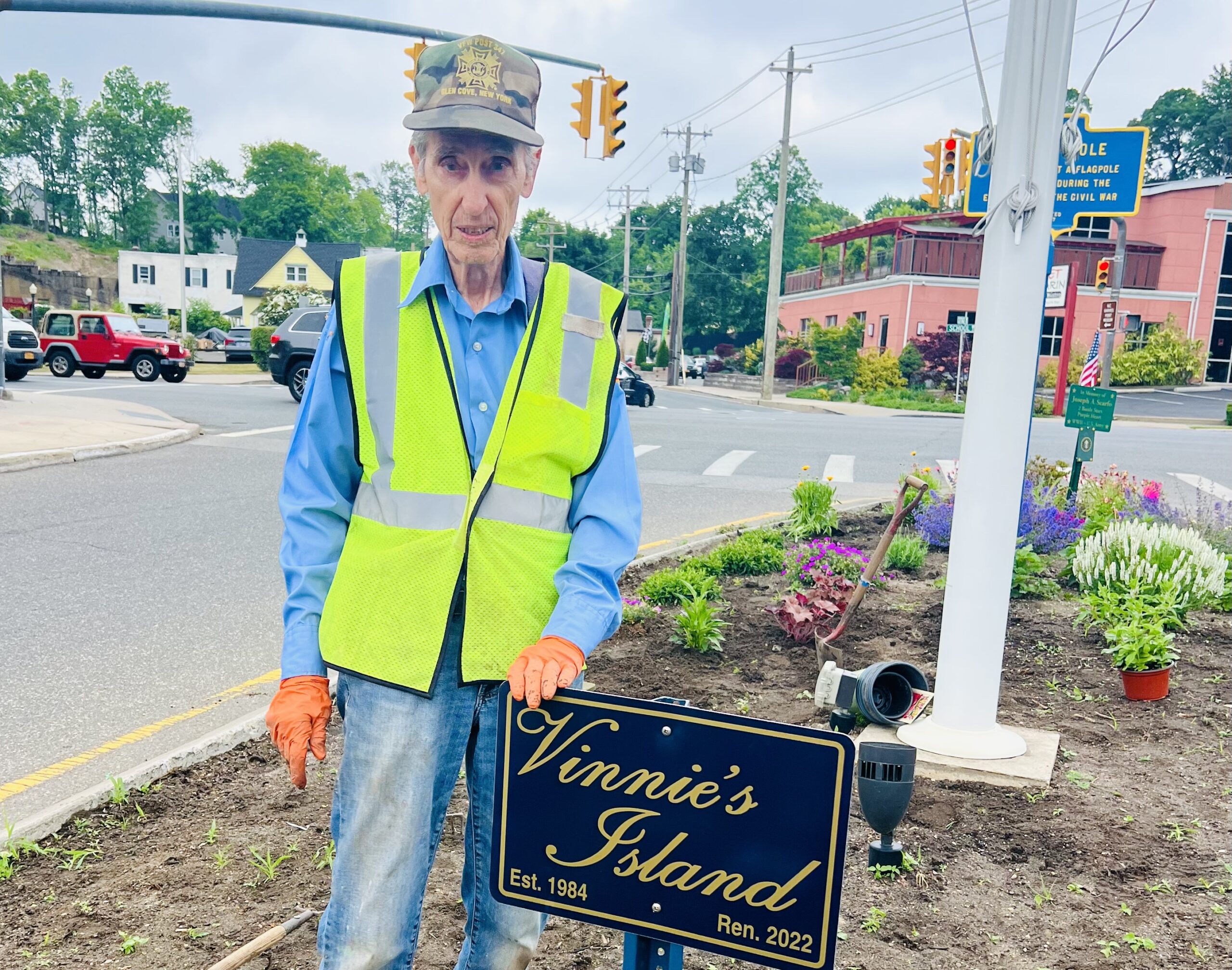 Vincent “Vinnie” Martinez, Sr., a U.S. Navy veteran and beloved member of the Glen Cove community, will soon be honored with a commemorative stone and plaque at Vinnie’s Island, a green space he personally transformed over four decades ago.